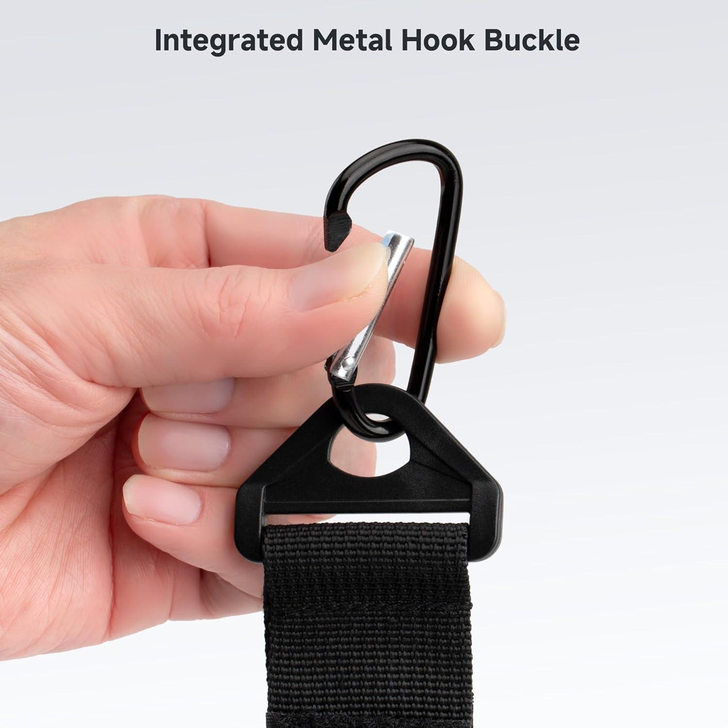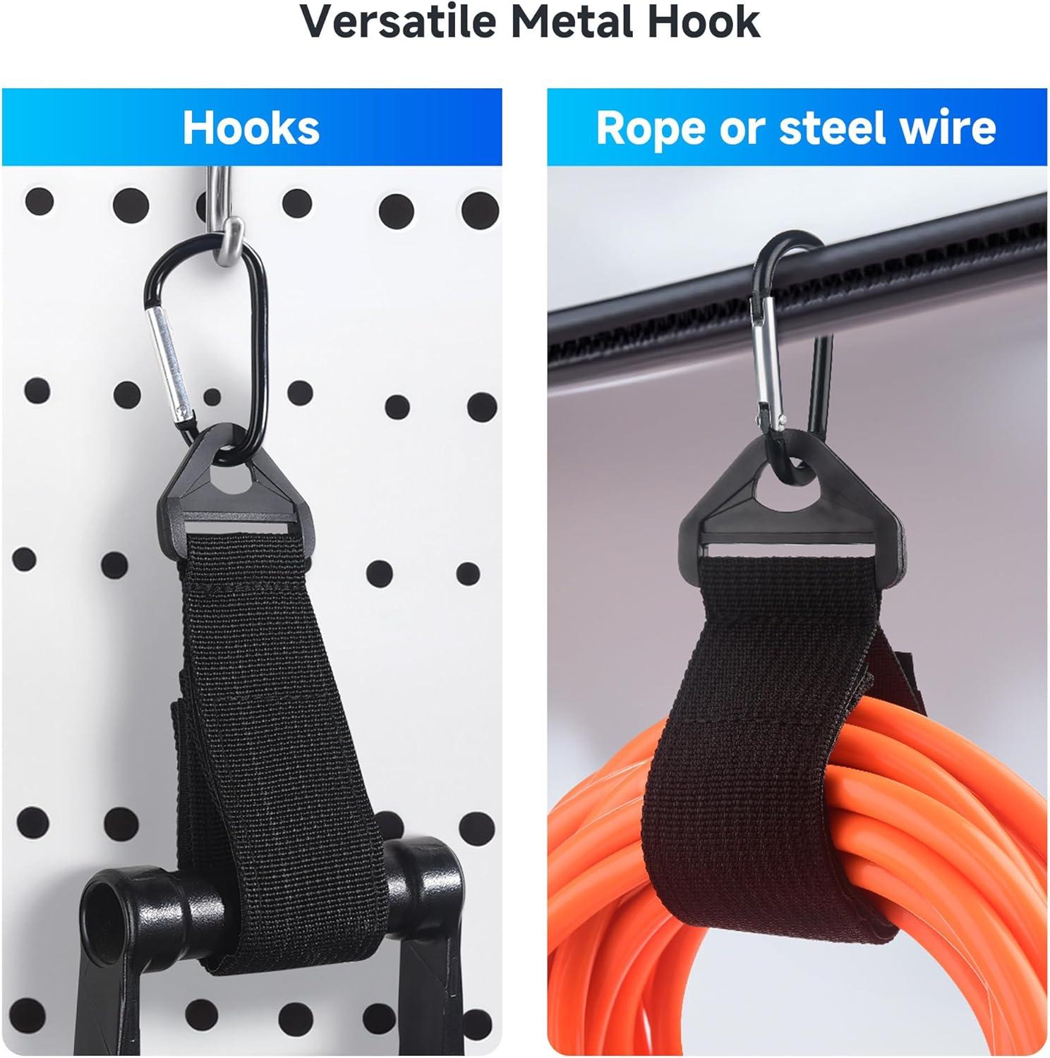 Versatile Metal Hook: The integrated metal hook buckle enhances functionality by allowing the heavy-duty straps to hang securely on nails, hooks, ropes, or steel wires. Optimize storage in garages, workshops, or utility rooms with ease.