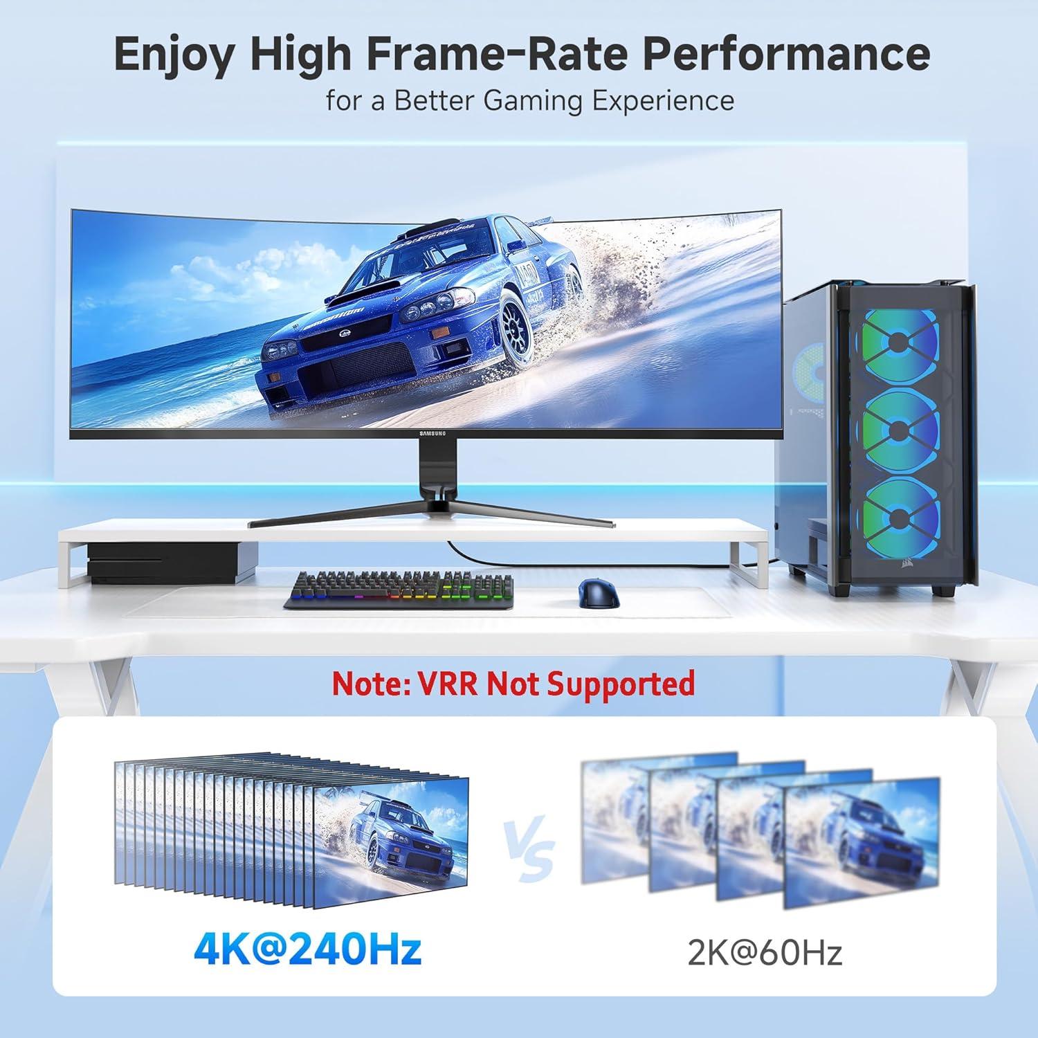 Immersive HDR and Audio Experience: Hear every detail with surround sound support and enjoy vibrant visuals with HDR using this HDMI to DisplayPort adapter. This HDMI 2.1 to DisplayPort 1.4 adapter cable supports ultra-high 4K resolution at 240Hz for a superior viewing experience.