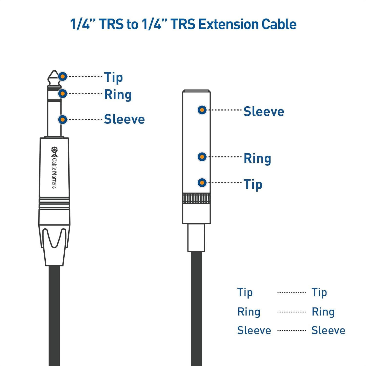 Extend the reach of your pro audio gear with the Cable Matters 6.35mm Extension Cable; Audio extension cable 1/4 inch boosts the length of a 6.35mm audio cable