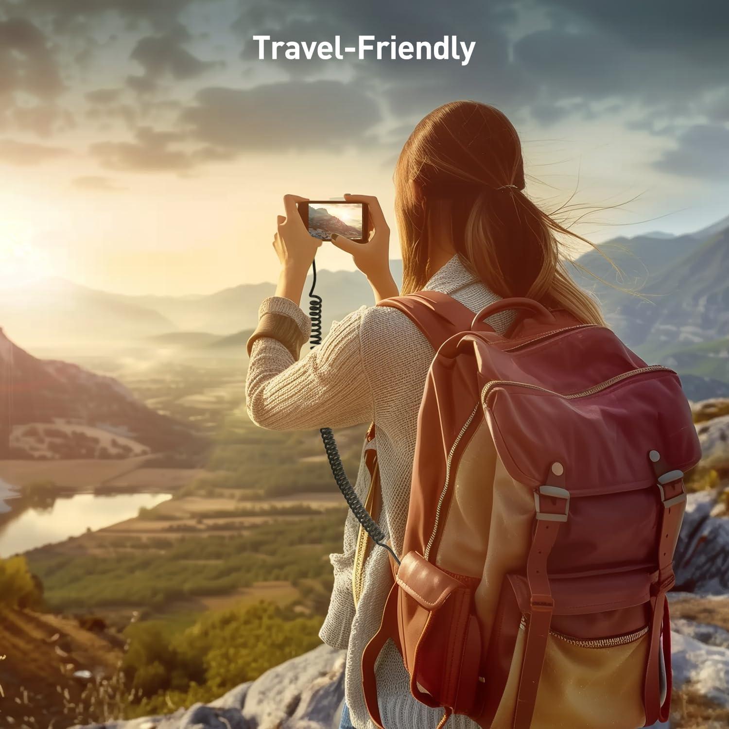 Convenient Coiled Design: This coiled USB type C cable connects USB-C devices to car chargers and more, ensuring fast charging. Its low-profile design clicks into place for a secure connection.