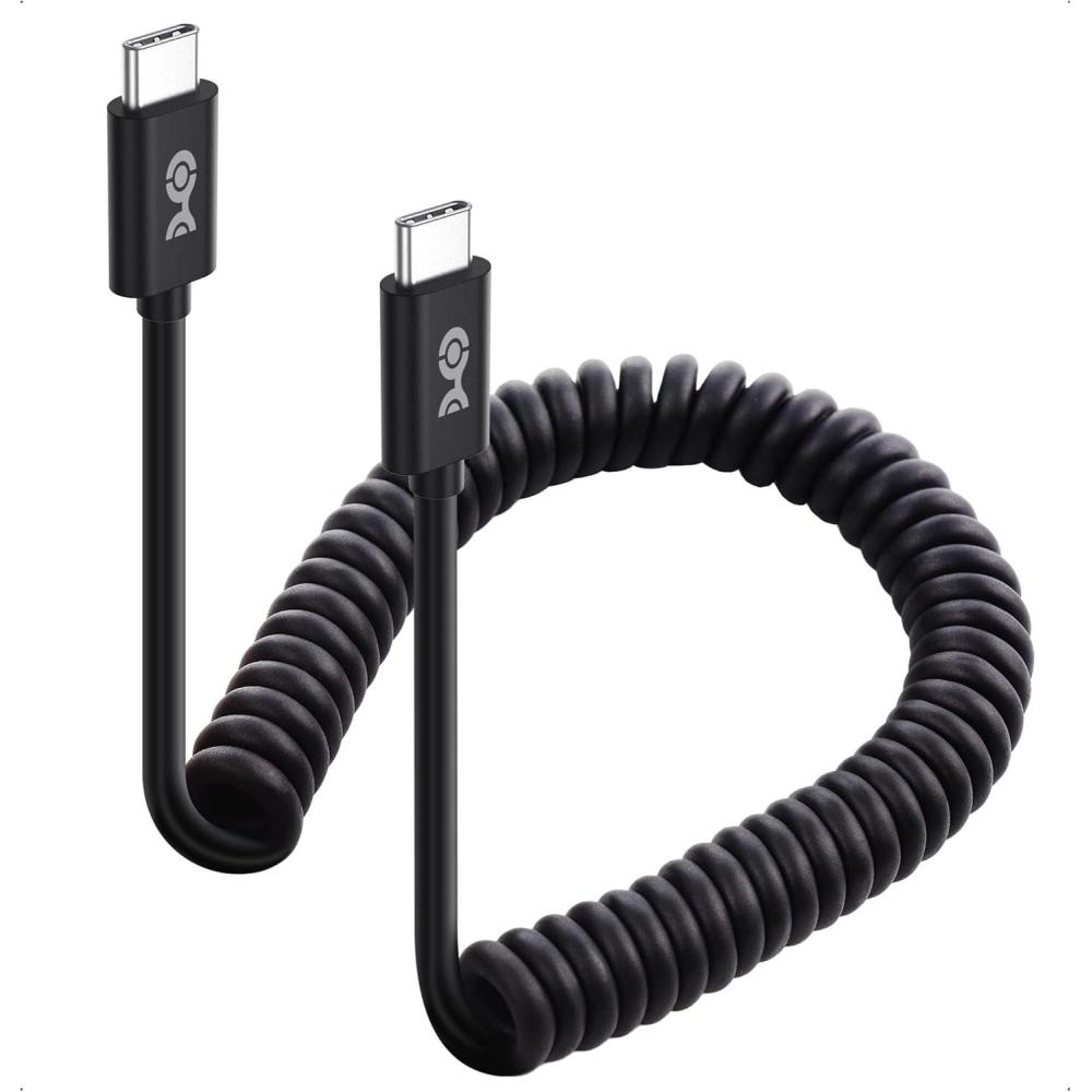 Flexible Length and Data Transfer: The USB C to USB C coiled cable stretches from 1 to 4 feet, avoiding tangles. Supports Hi-Speed USB 2.0 data transfer rates up to 480 Mbps for quick syncing.