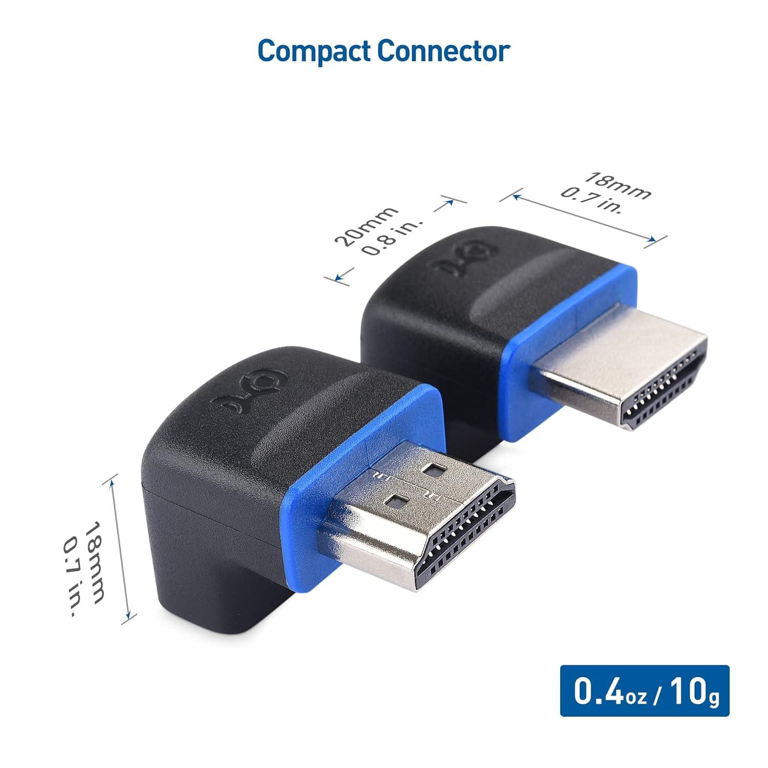 Connect with confidence in hard-to-reach or cramped spaces with this combo-pack of right angle hdmi adapter; HDMI 2.1 right angle adapter kit includes 1 90-degree and 1 270-degree HDMI male to female connector