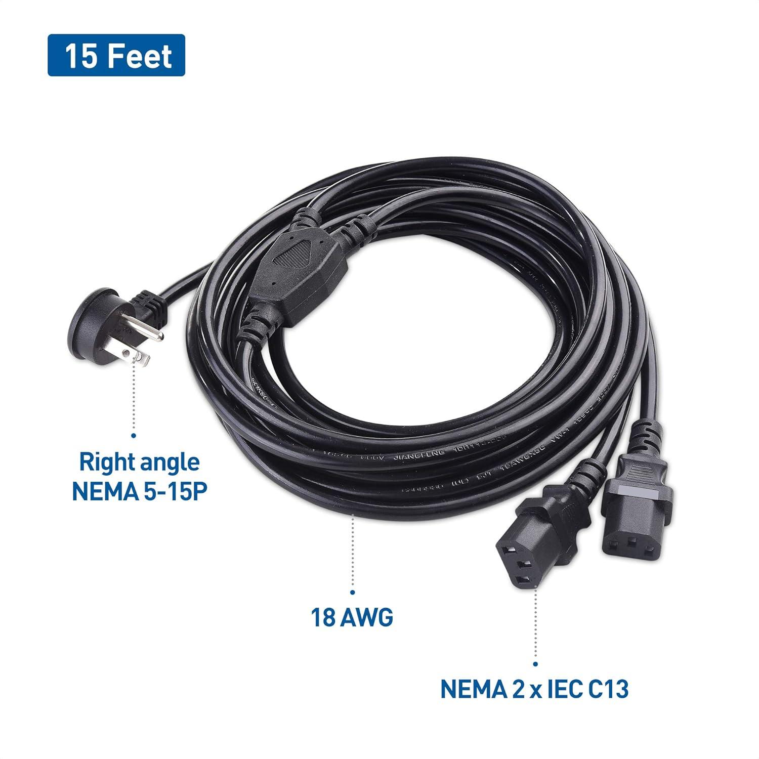 Cable Matters Computer Power Cord Splitter (NEMA 5-15P to 2X IEC C13) – 6 Feet(15 ft)