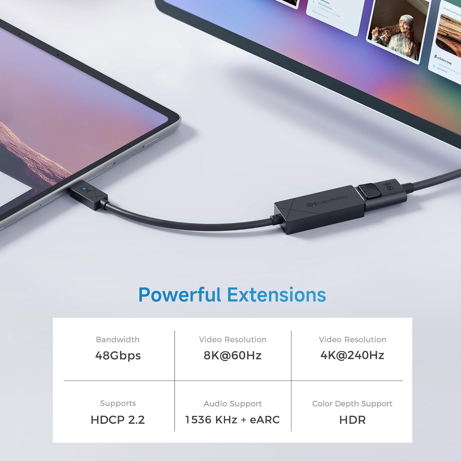Cable Matters [Designed for Microsoft Surface] USB C to DisplayPort 1.4 Adapter, Supports 4K@240hz, 8K@60hz, HDR, Compatible with Surface Pro, Surface Laptop, Surface Book with USB-C or Thunderbolt 4