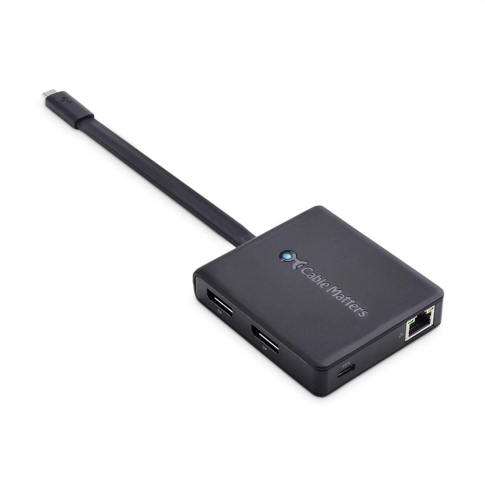 Expand your workspace with the Cable Matters Multiport USB C Dock with Dual DisplayPort; Add up to two monitors, two USB 2.0 peripherals, 480Mbps wired Ethernet networking, and pass-through charging to a USB-C enabled desktop or laptop