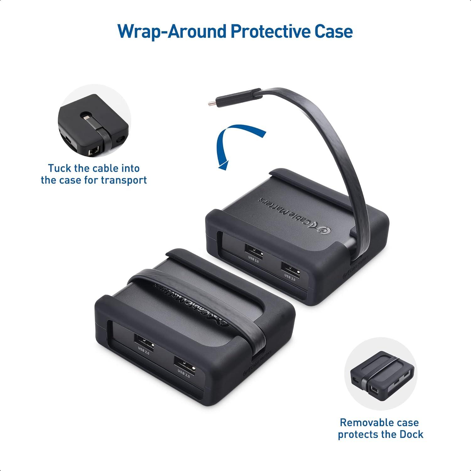 5 in 1 function USB-C hub with HDMI and a removable case provides all the functions to work on the road when traveling; Connect a wireless mouse or keyboard with this USB C laptop dock; USBC Dock supports stable connection to an Ethernet network; Transfer files to a flash drive and expand your workspace to dual 4K UHD displays with this Thunderbolt 3 dock; Mini Dock Station weighs less than 5 ounces with a 6-inch cable tail that tucks into the case for transport
