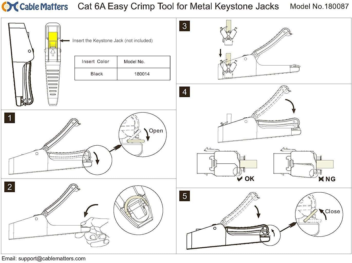 Easy crimp tool simultaneously simplifies Cat 6A cable termination into a keystone jack; Ensures consistent termination of Cat 6A cable for reliable performance