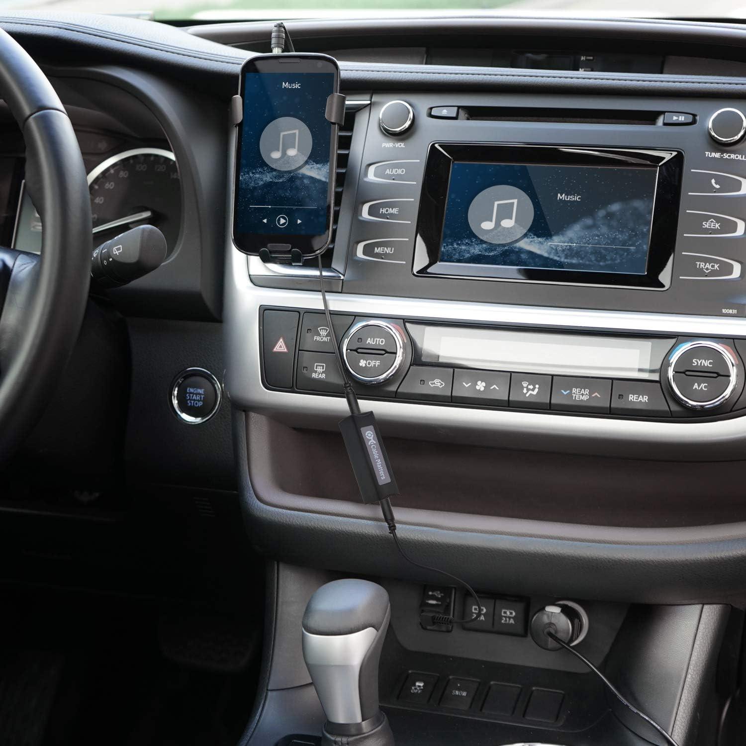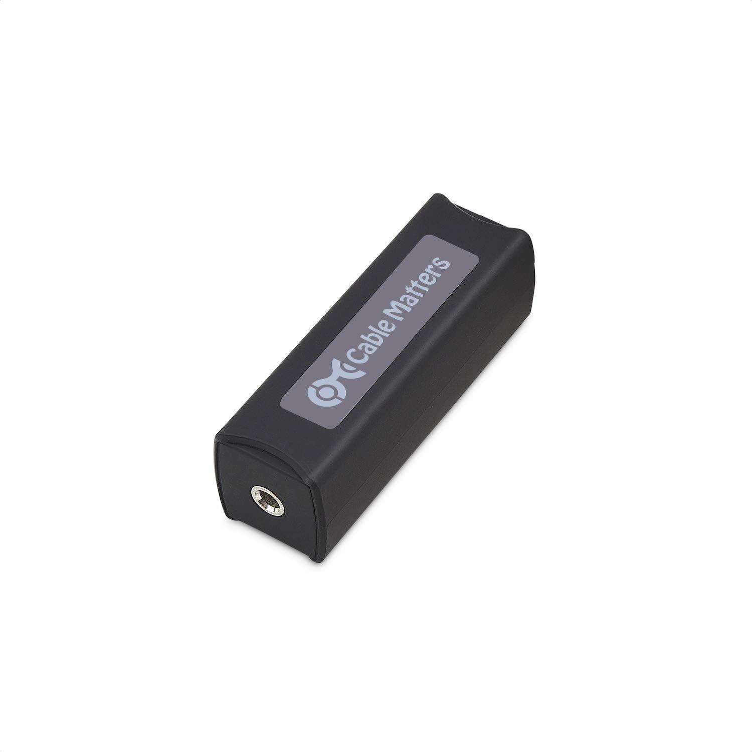 Eliminate buzzing, hissing, humming, and static on car or stereo audio systems with the Cable Matters Aux Ground Loop Noise Isolator; Hum filter is compatible with 3.5mm aux port, 3.5mm line in/out ports on audio systems, phone and tablets, headphones, speakers, and more