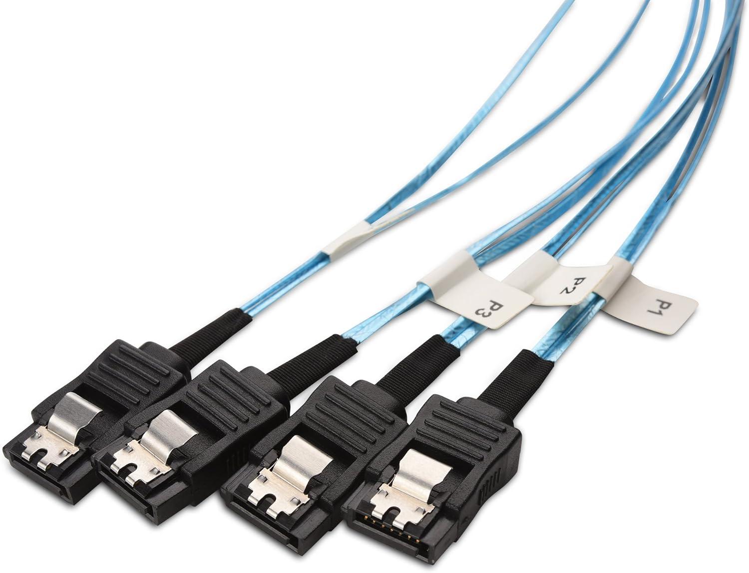 Internal HD Mini SAS cable is specifically designed to connect a 12 Gbps host bus adapter or RAID controller with SFF-8643 to 4 discrete SATA drives; Mini SAS HD to SATA adapter cable provides reliable internal connectivity between a high density RAID controller card and direct attached storage devices with a SATA plug