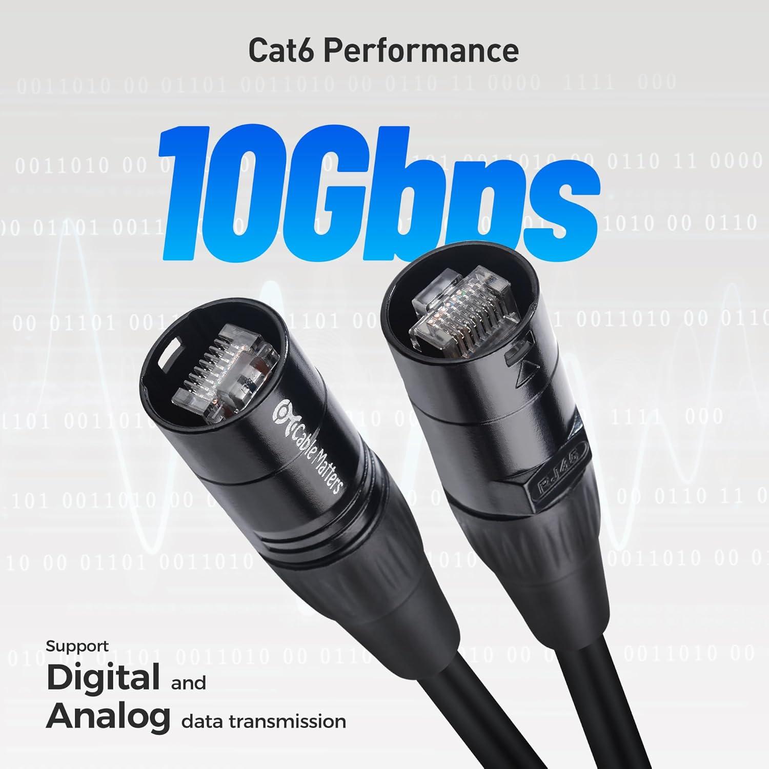 Cat6 Performance: This EtherCON compatible Cat 6 cable supports Cat 6 speeds of up to 10Gbps; Superior shielding ensures flawless transmission of audio, video, and data across systems