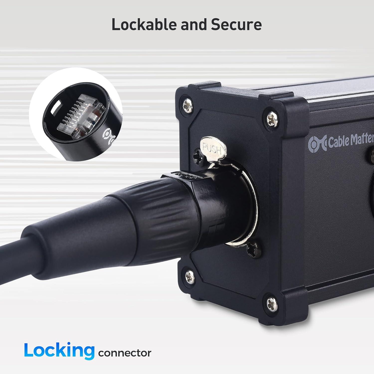 Lockable and Secure: This Cat6 Ethernet cable EtherCON compatible features a locking connector that creates a secure connection to equipment; Connect with confidence with this EtherCON compatible RJ45 cable