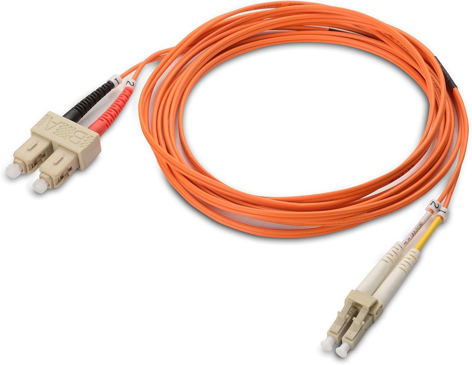 Multimode fiber duplex 62.5/125 micron fiber cables with small form factor LC to legacy SC connectors enable connections to newer OM1 classified SFP and GBIC transceivers, Ethernet switches, media converters, industrial Ethernet devices, and optical fiber NIC's; Provides premise connections for fiber patch panels, work area outlets, cross- connect jumpers, and optical fiber systems