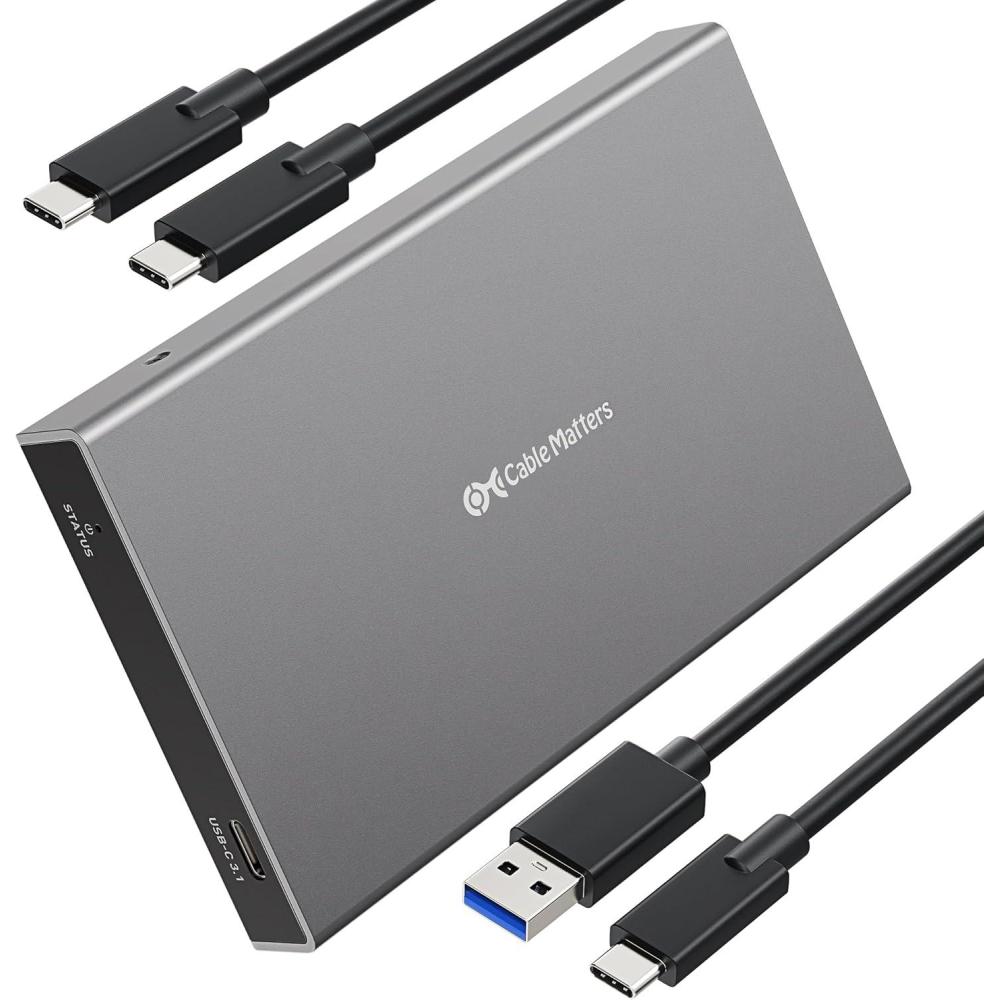 Cable Matters Premium Aluminum 10Gbps Gen 2 USB C Hard Drive Enclosure for 2.5" SSD/HDD with USB-C and USB-A Cables - Thunderbolt 4 / USB4 / Thunderbolt 3 Port Compatible with MacBook Pro, MacBook Air