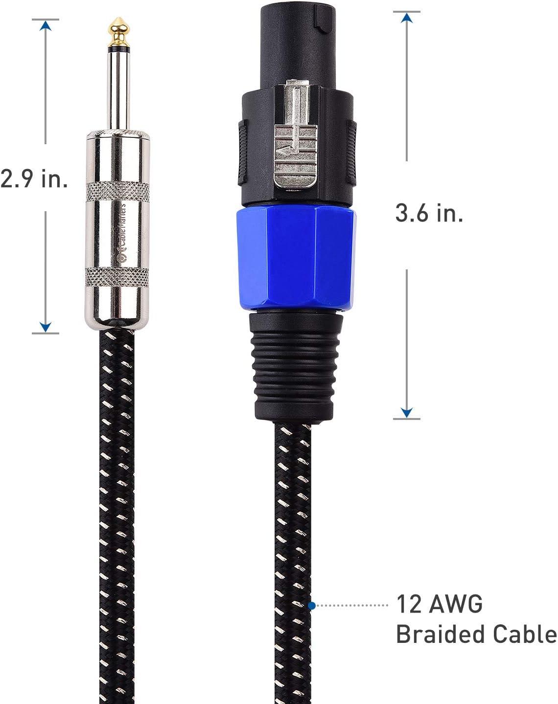 Cable Matters Premium Braided 12AWG 1/4 Inch TS to Speaker Cable 6 ft Compatible with Speakon NL4FC Port(6 ft)