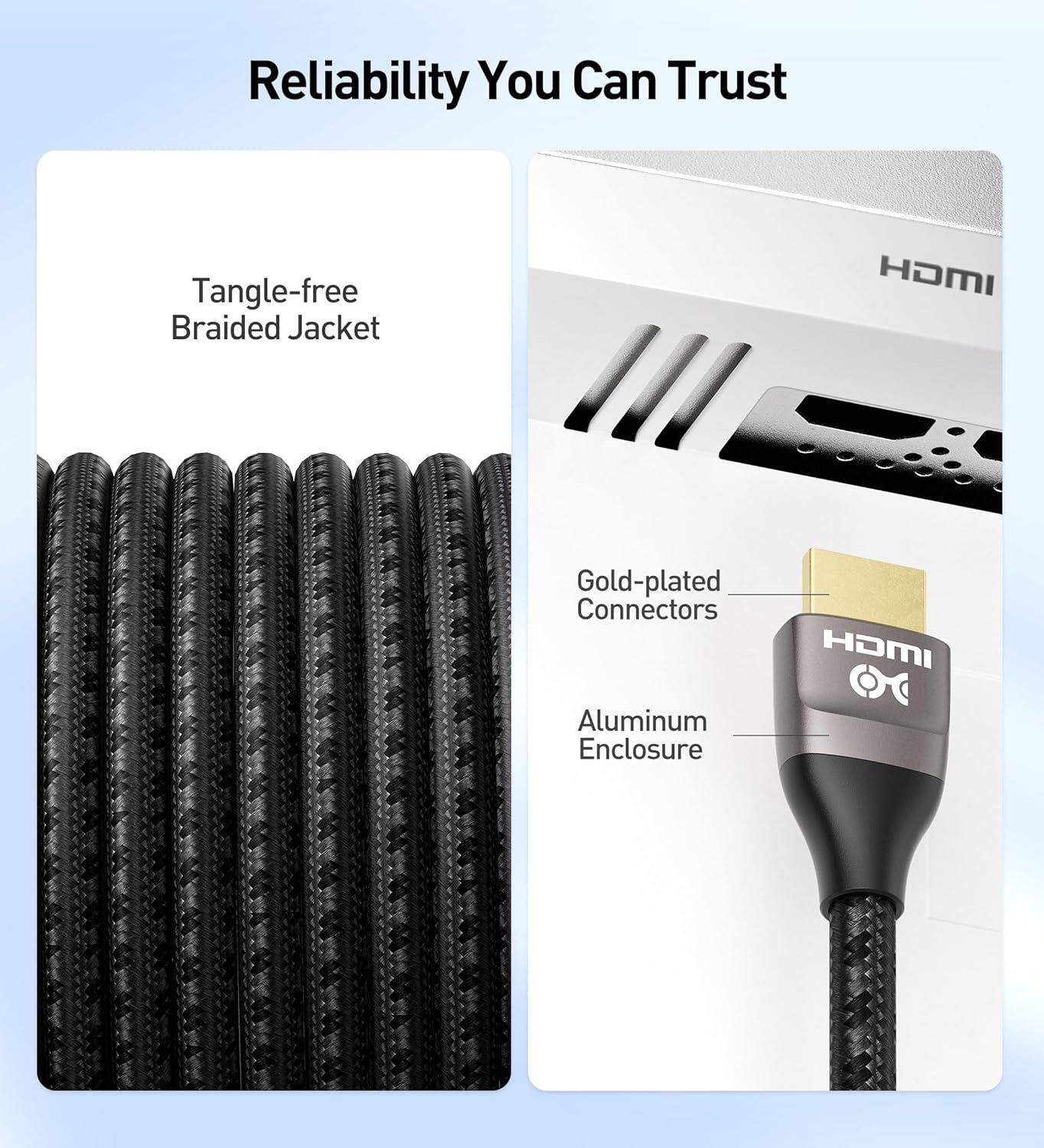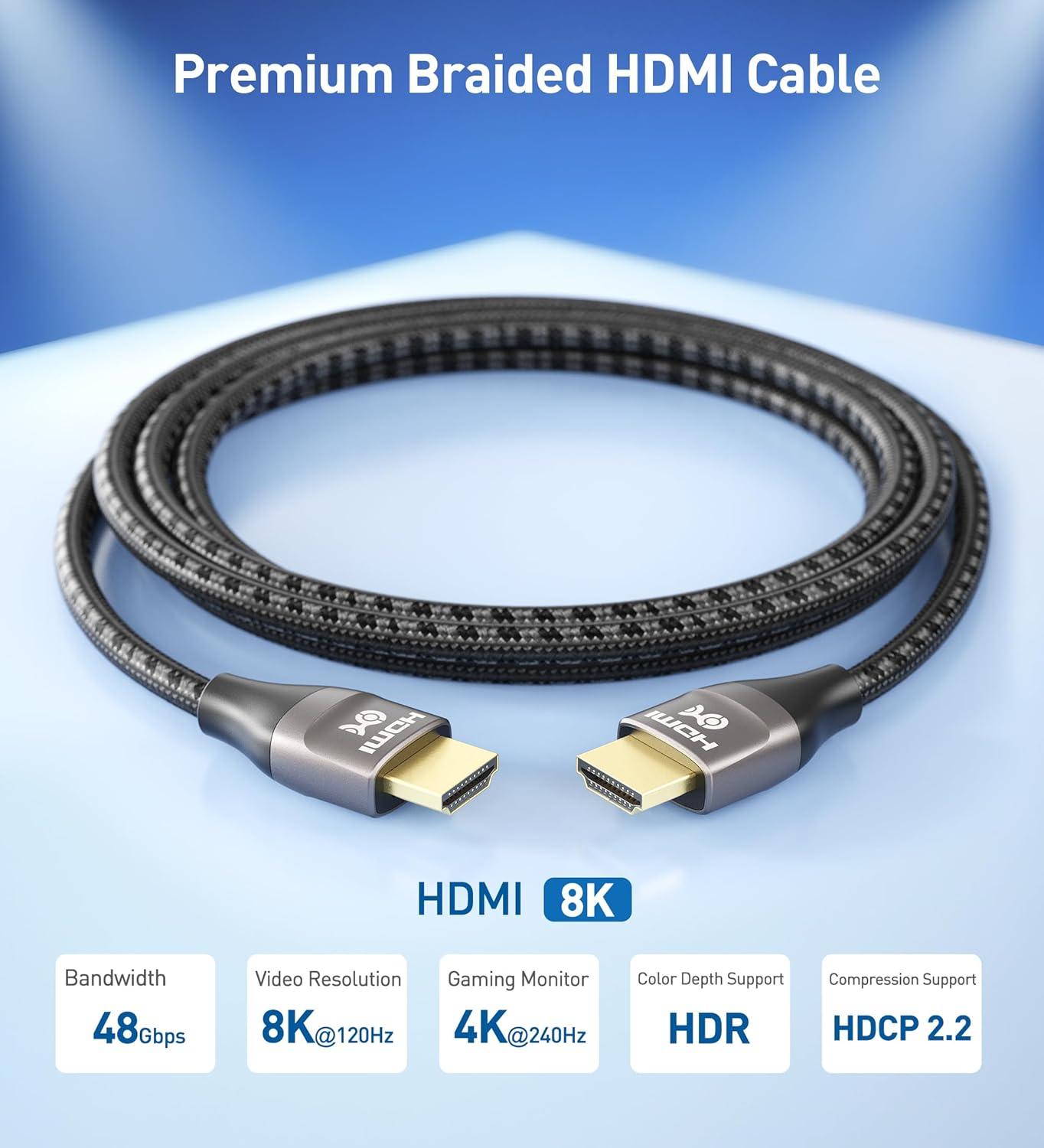 Cable Matters Premium Braided 48Gbps Ultra HD 8K HDMI Cable 6.6 ft / 2m with 8K@60Hz, 4K@240Hz and HDR Support for PS5, Xbox Series X/S, RTX3080 / 3090, RX 6800/6900, Apple TV and More in Black(Gray)