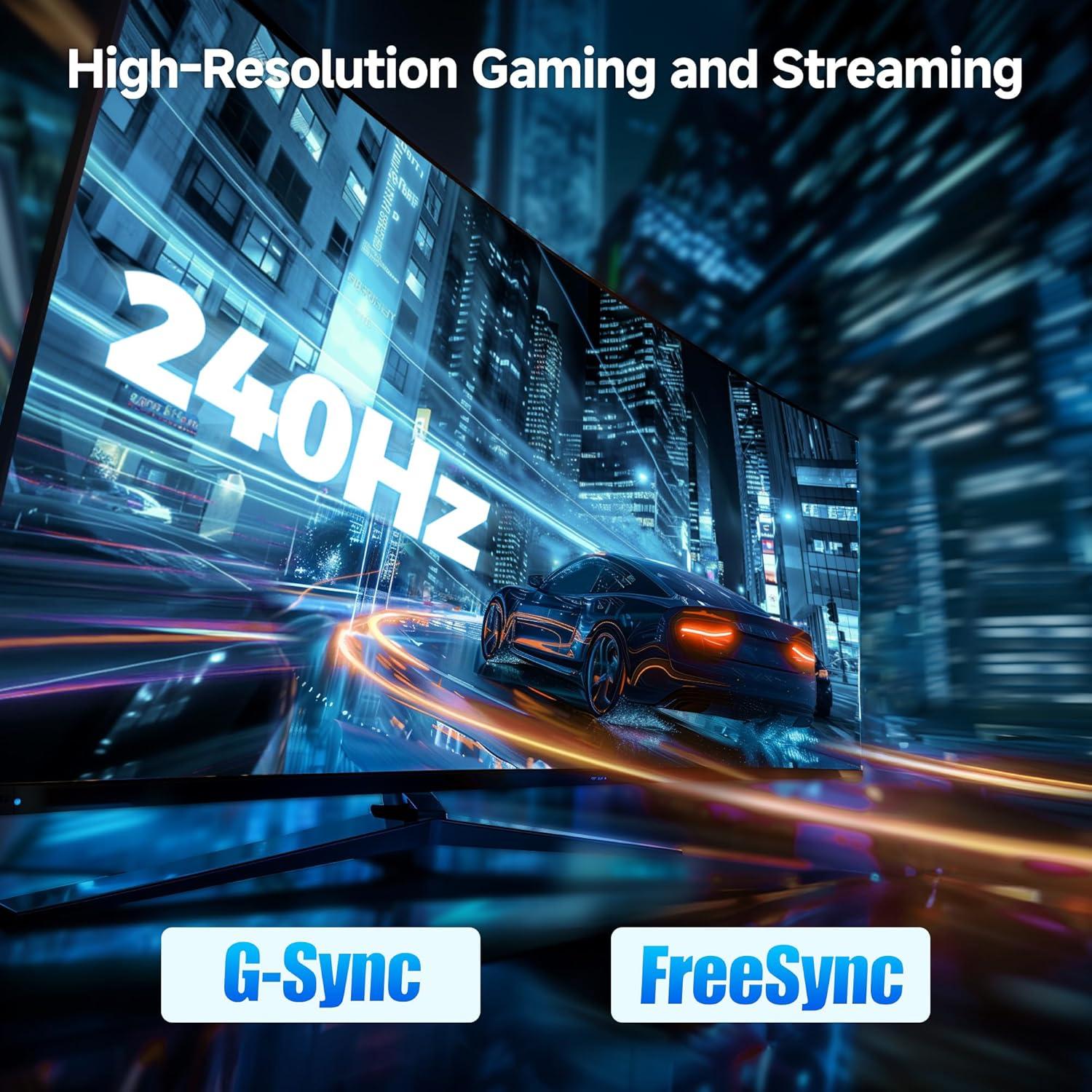 VESA Certified Performance: This DisplayPort 1.4 cable is VESA Certified, ensuring top-notch quality and performance. Experience the full potential of 32.4 Gbps bandwidth, supporting 8K@60Hz, 4K@240Hz, and advanced gaming technologies like FreeSync, G-SYNC, and HDR for seamless, high-resolution visuals.