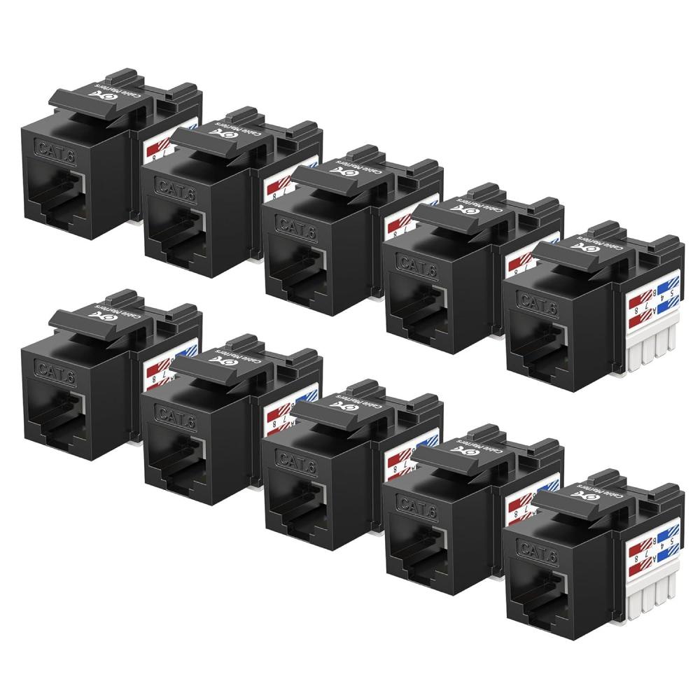 Cable Matters [UL Listed] 10-Pack 10Gbps Cat6 Keystone Jacks, RJ45 Keystone Jack, Ethernet Keystone Jack in White for Patch Panel and Wall Plate(Black)