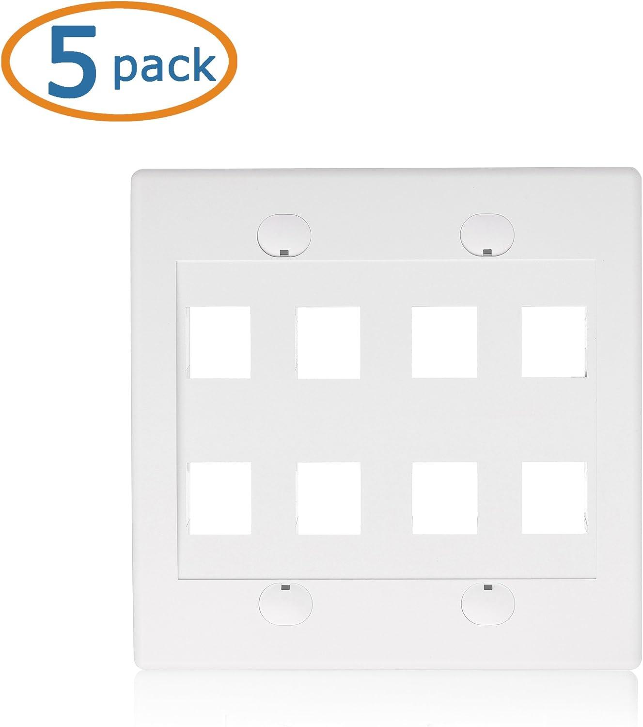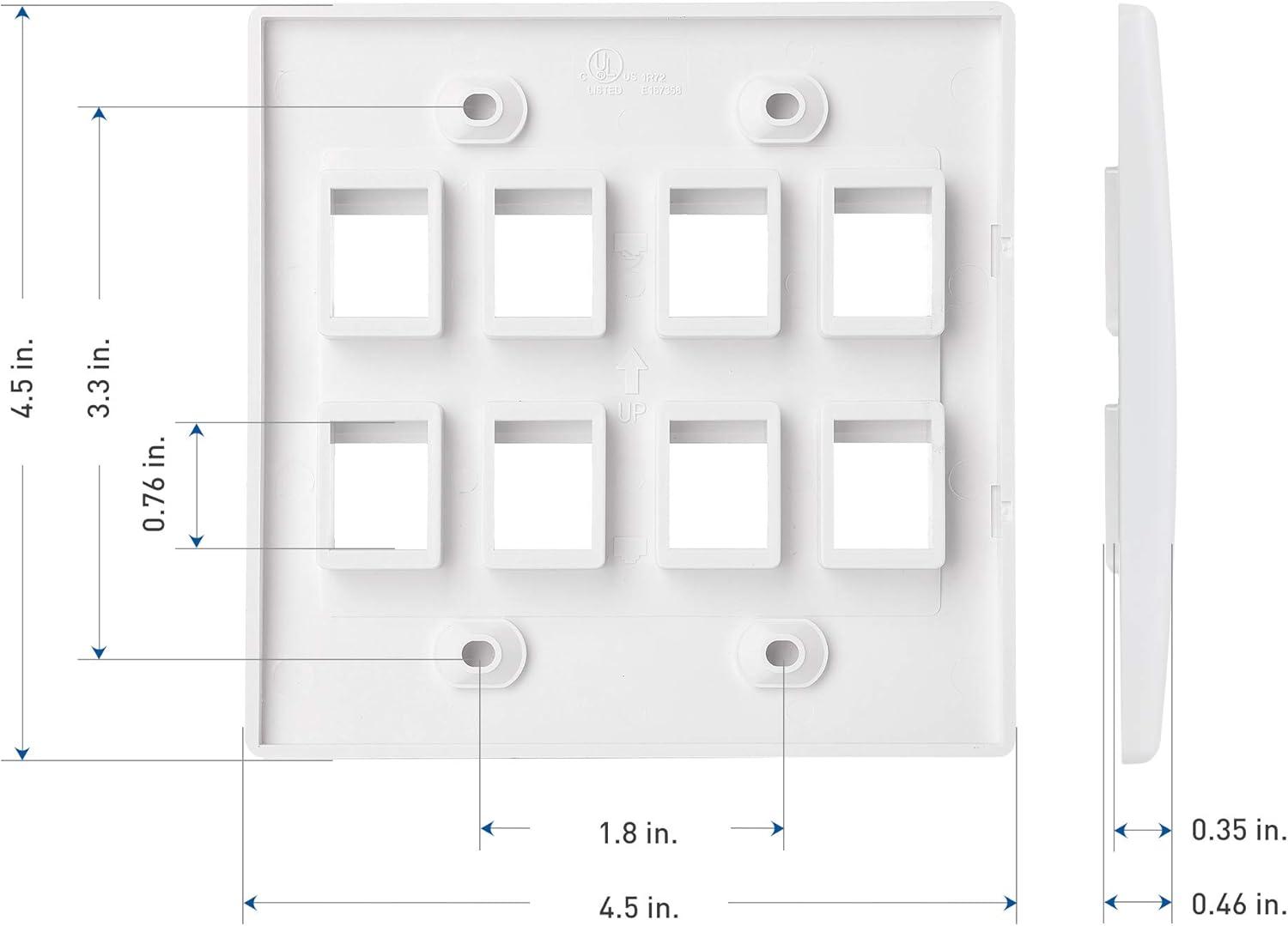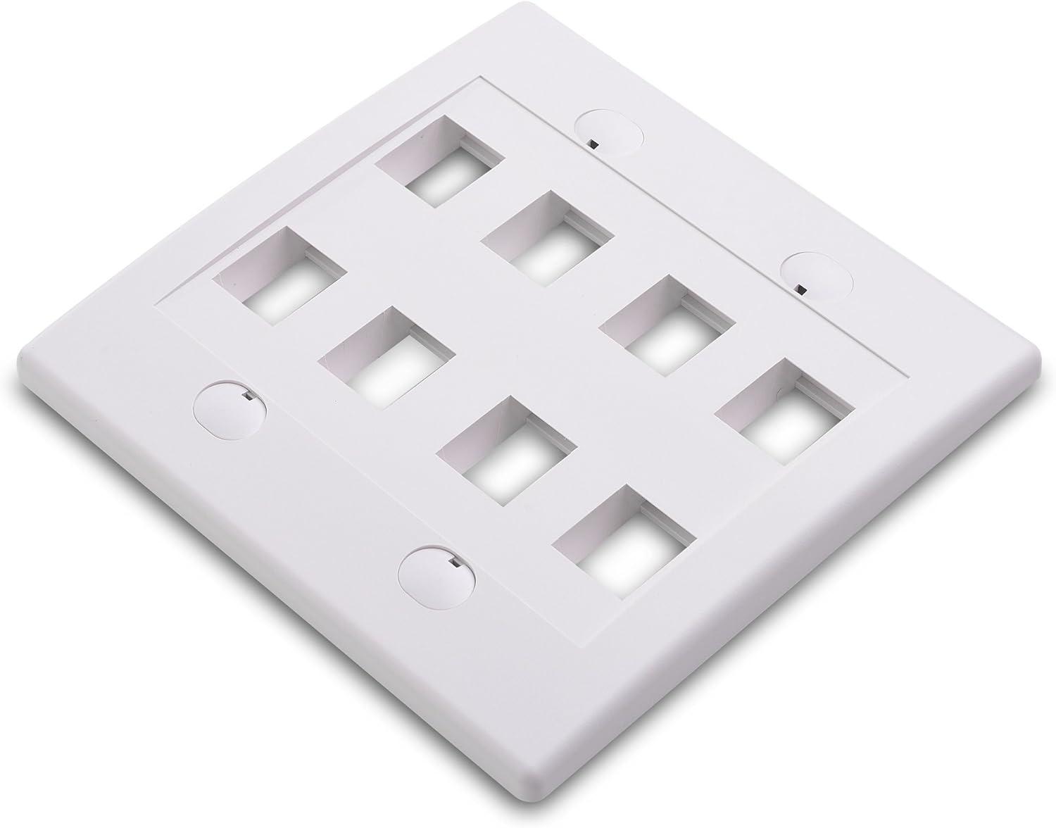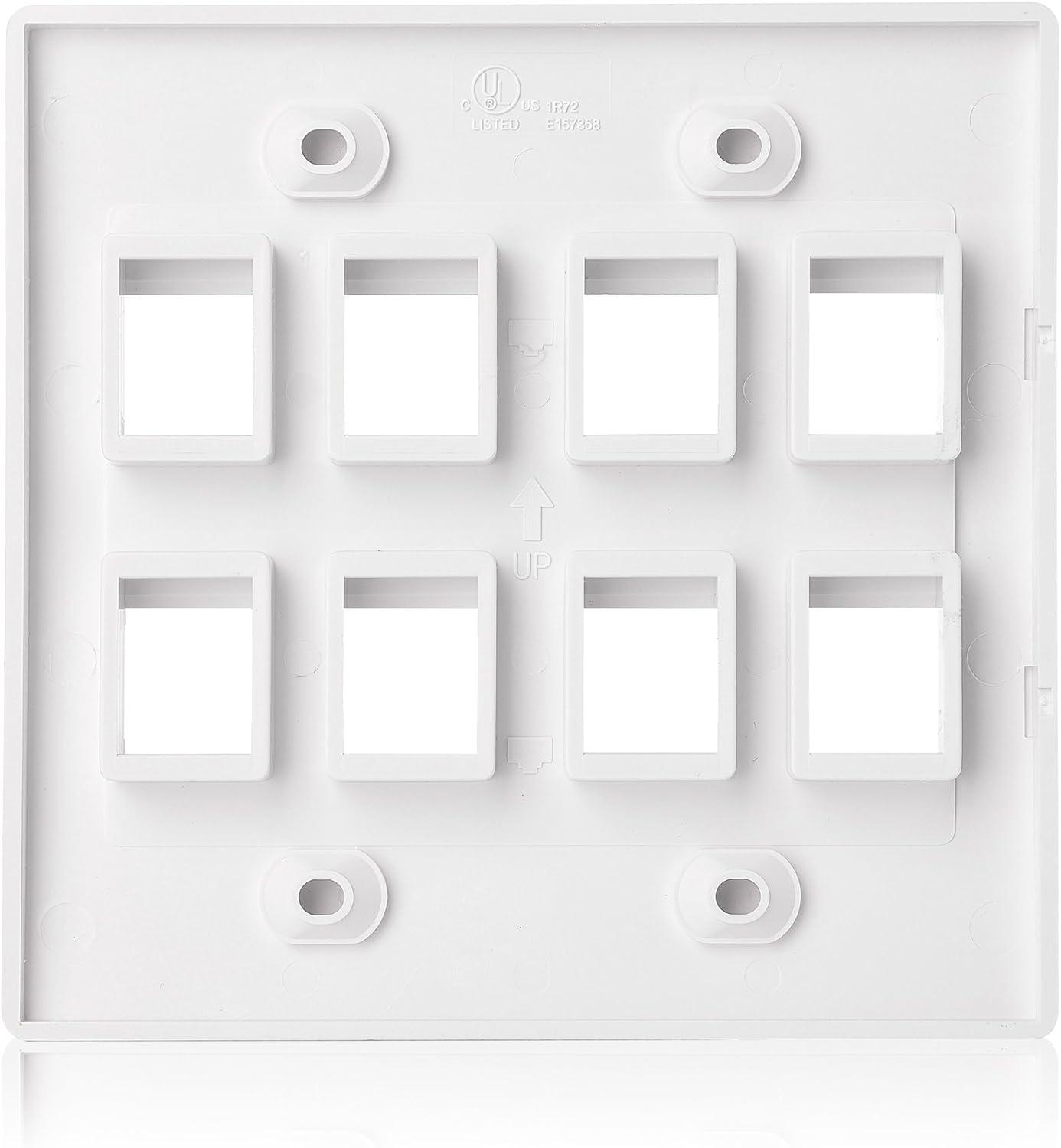 Cable Matters UL Listed 10-Pack 2 Port Keystone Wall Plate (Cat6, Cat5e Ethernet Wall Plate) in White(8-Port)