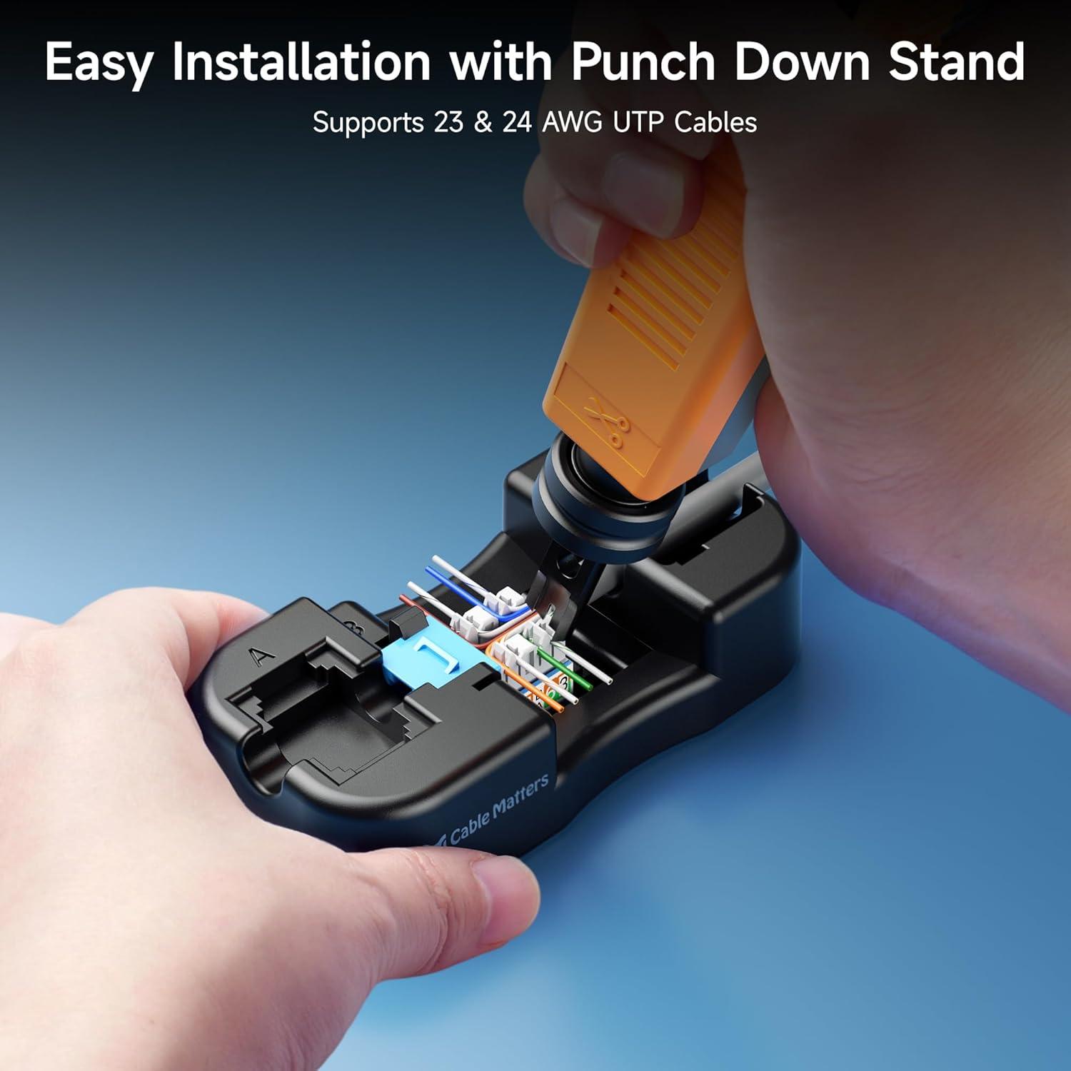 Flexible Termination Options: The 90-degree keystone RJ45 jack supports tool-free, impact tool, and crimp tool termination. Each Cat 6 keystone jack features universal T568A and T568B wiring labels and works with 110-style punch-down tools (sold separately). Also compatible with the Cable Matters RJ45 Crimp Tool (Model No. 180169) for precise, fast terminations (sold separately).
