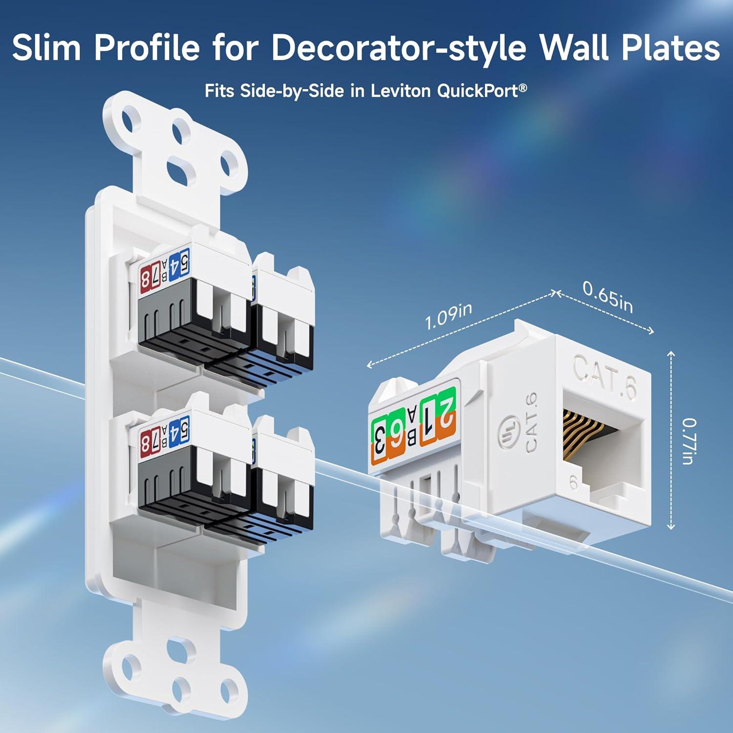 Slim Profile Keystone Jack Compatibility: Cable Matters Cat6 keystone jacks fit standard or slim keystone openings in patch panels, Cat6 wall plates, or surface mount boxes. These compact ethernet jacks are ideal for high-density installs and compatible with Leviton QuickPort Systems and slim Cat6 Decora style wall plates. Accepts 23 and 24 AWG unshielded twisted pair (UTP) cables for flexible configurations.