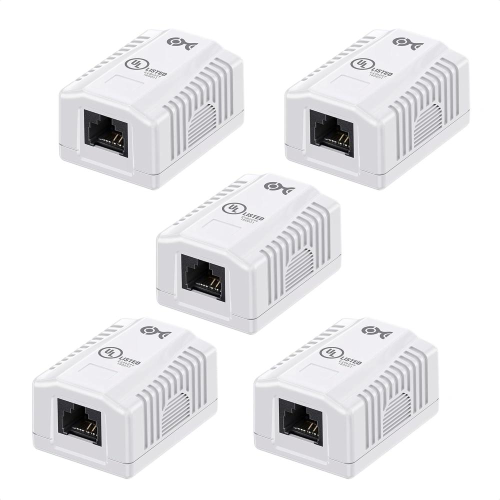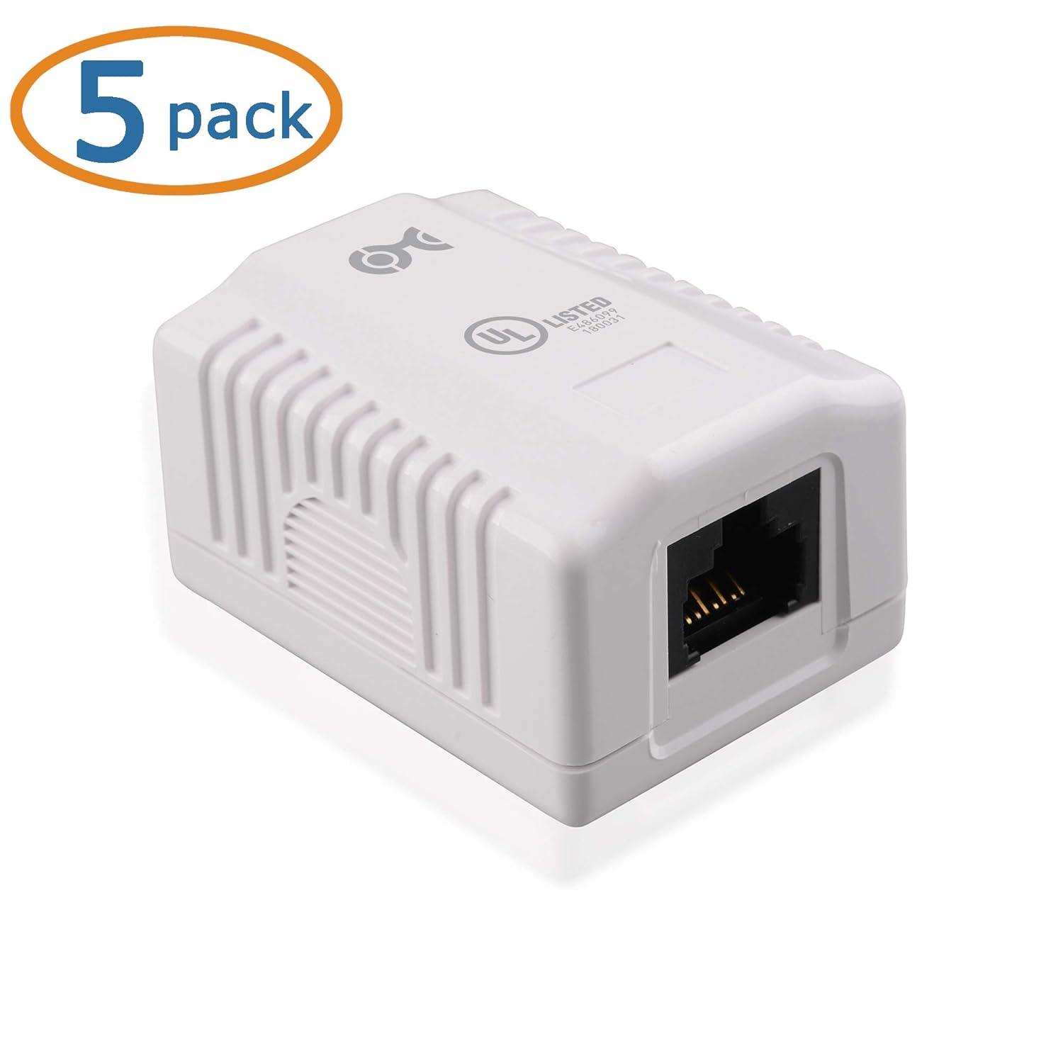 Cost effective 5 pack of Ethernet jacks provides surface boxes to add or repair five office or home installations