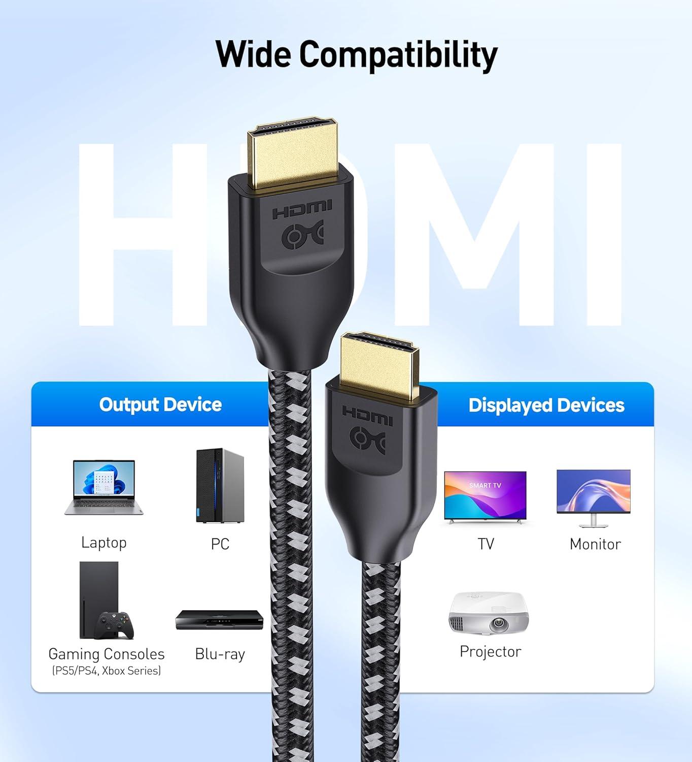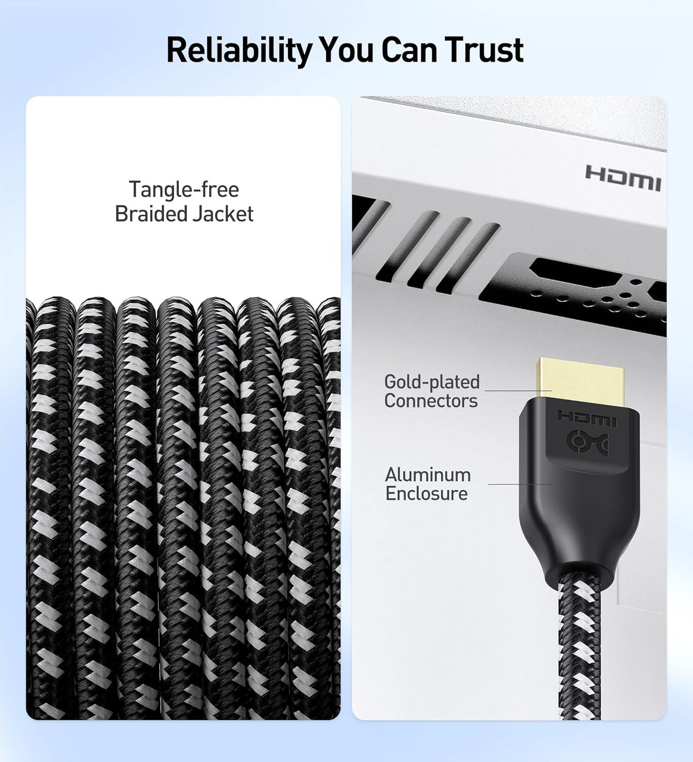 Braided design of this braided HDMI cable 8K protects it from tangling and fraying; Distinctive look and feel offers a premium experience
