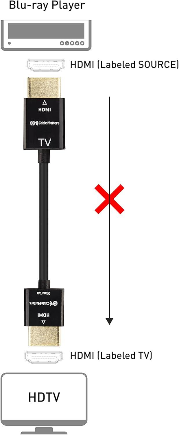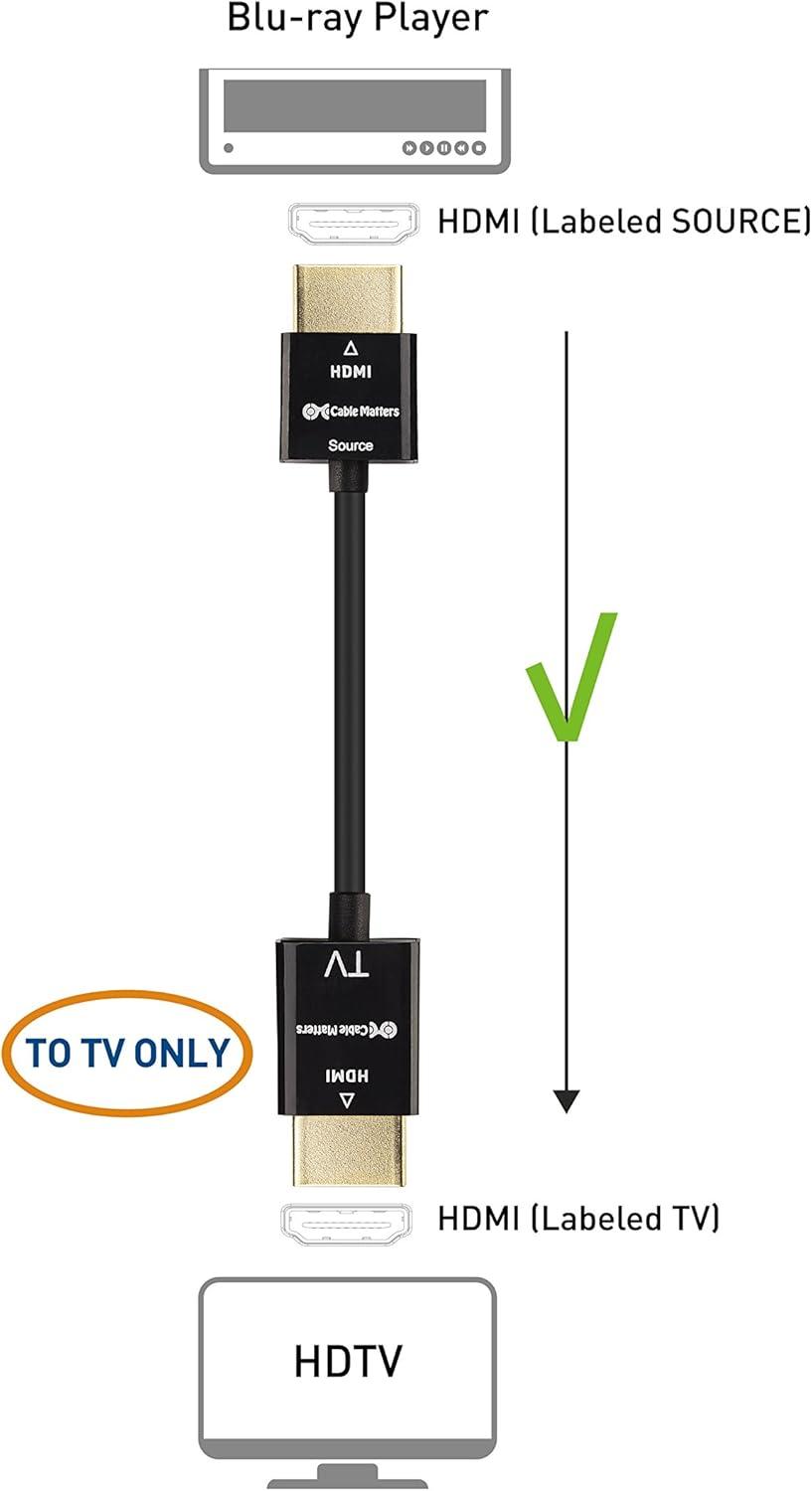 Direction matters when installing this cable; Redmere HDMI cable is NOT bi-directional; Labeled connectors indicate the TV (display) and the SOURCE (device) ends of the HDMI cord to avoid confusion; TV (display) connector incorporates an embedded chipset that boosts the signal from the source; It only functions in one direction