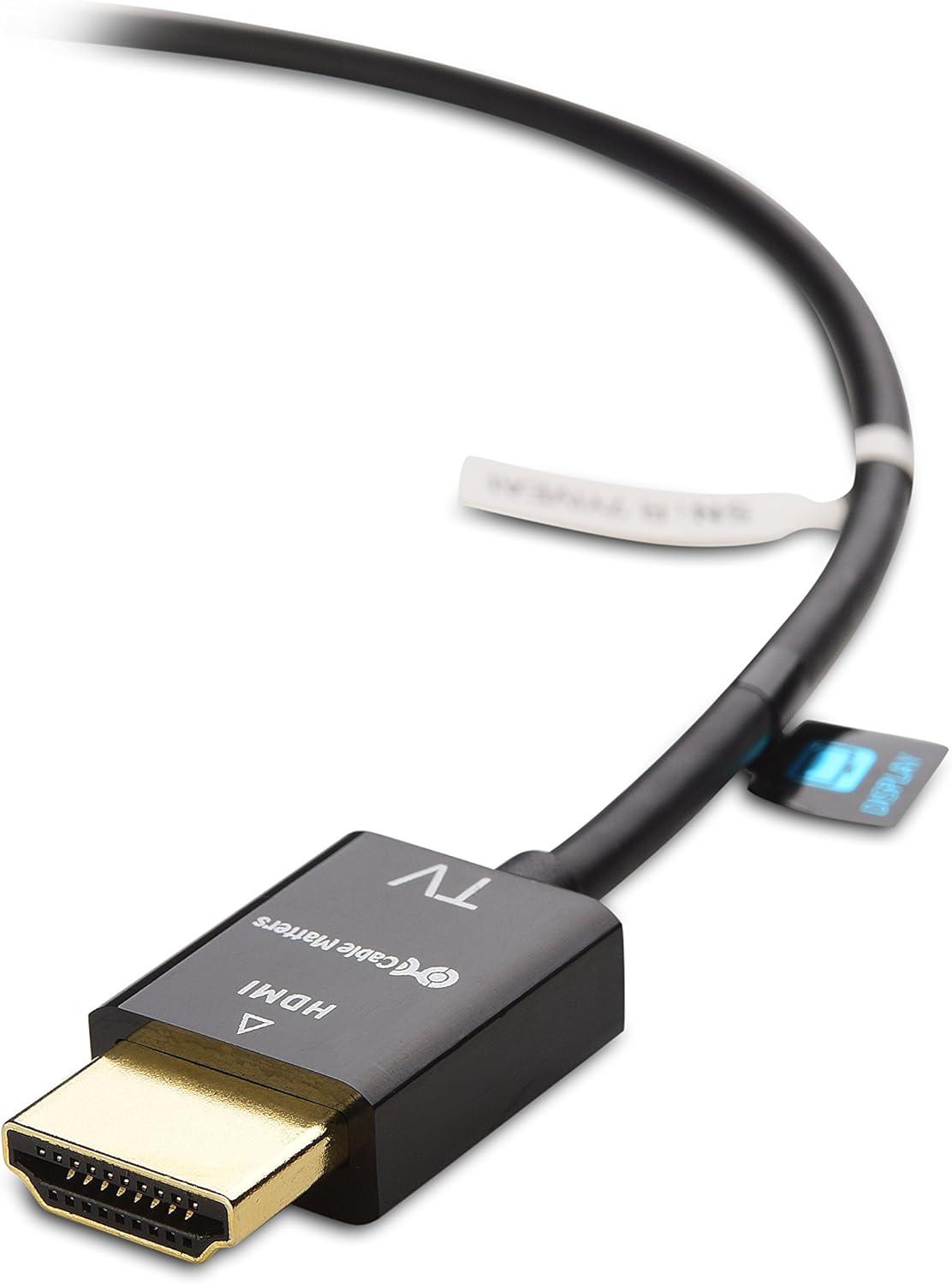 Lightweight design combines gold-plated connectors with molded strain relief in a flexible 36 AWG solid copper conductor cable that weighs only a few ounces; Slim HDMI cable provides a snug and secure connection to vertical HDMI portsor to smaller equipment without falling out of the display or tugging on the device like heavier HDMI cables