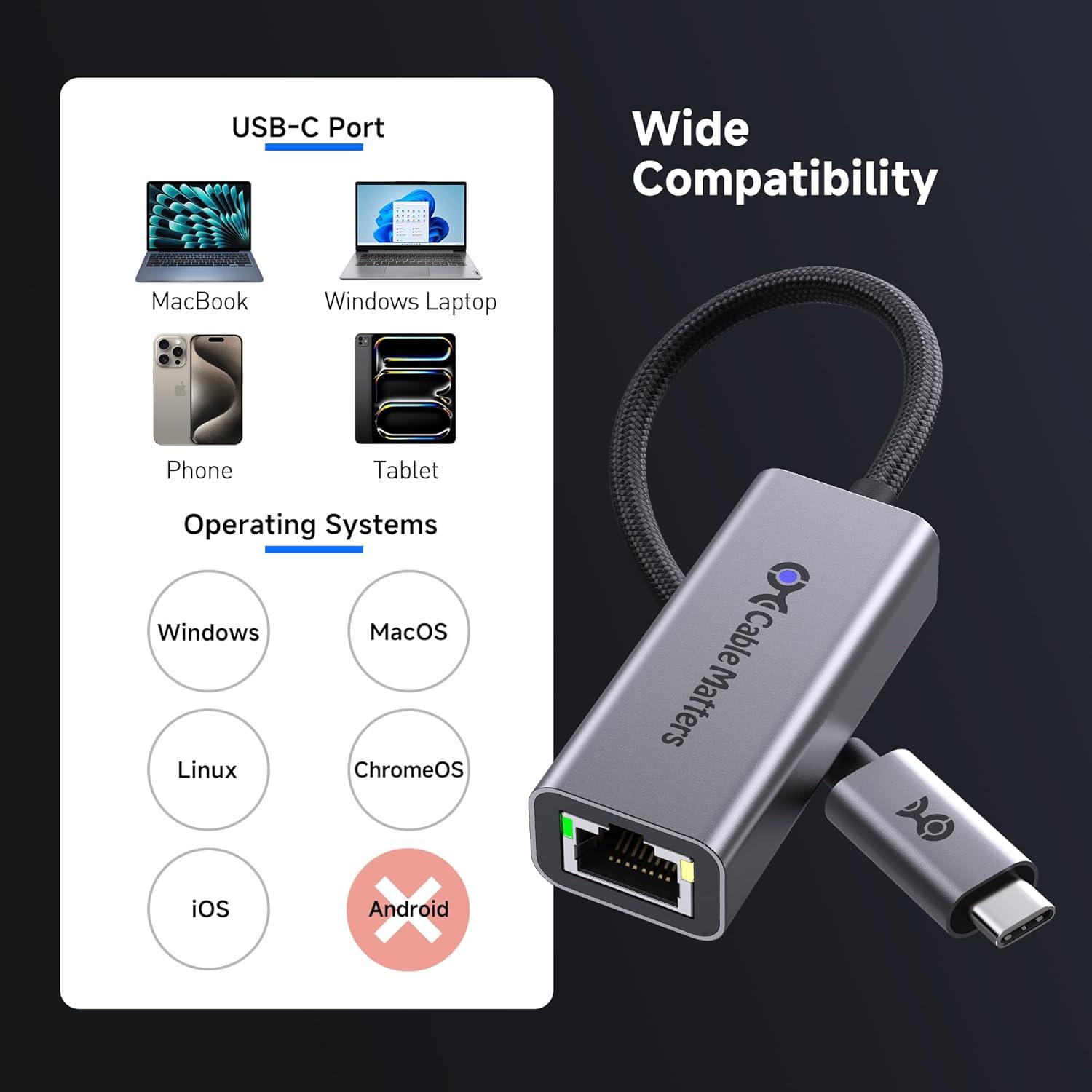 Plug & Play – No Drivers Needed: Enjoy easy setup with plug-and-play functionality. Simply connect the USB C 5Gb Ethernet adapter to your device and start using it right away—no drivers or software required for quick and hassle-free installation. Note: Manual driver installation may be required on older operating systems or certain Linux kernel versions.