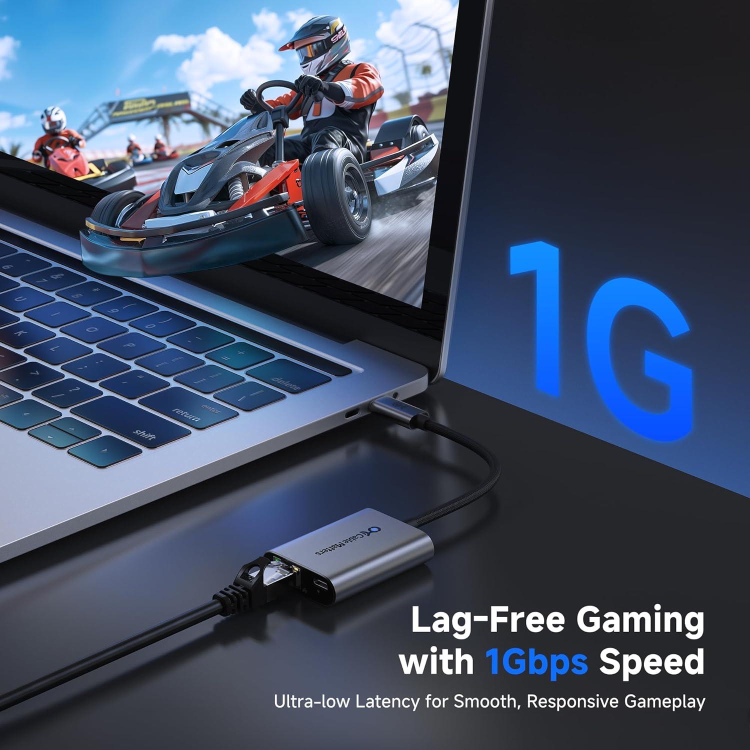 Consistent & Efficient Performance: This USBC to Ethernet adapter with Gigabit connectivity and 140W PD charging ensures fast, stable performance with low latency and minimal power loss. No drivers or software needed—simply plug and play your USBC Ethernet adapter for instant network access.