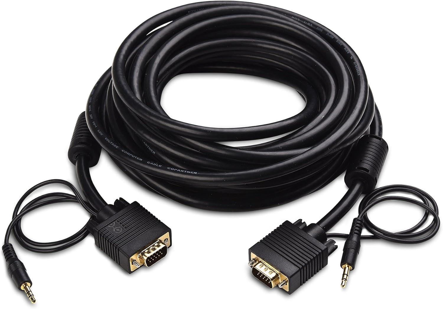 Cable Matters VGA Cable with Audio (SVGA Monitor Cable with 3.5mm Stereo Audio) 6 Feet(25 Feet)