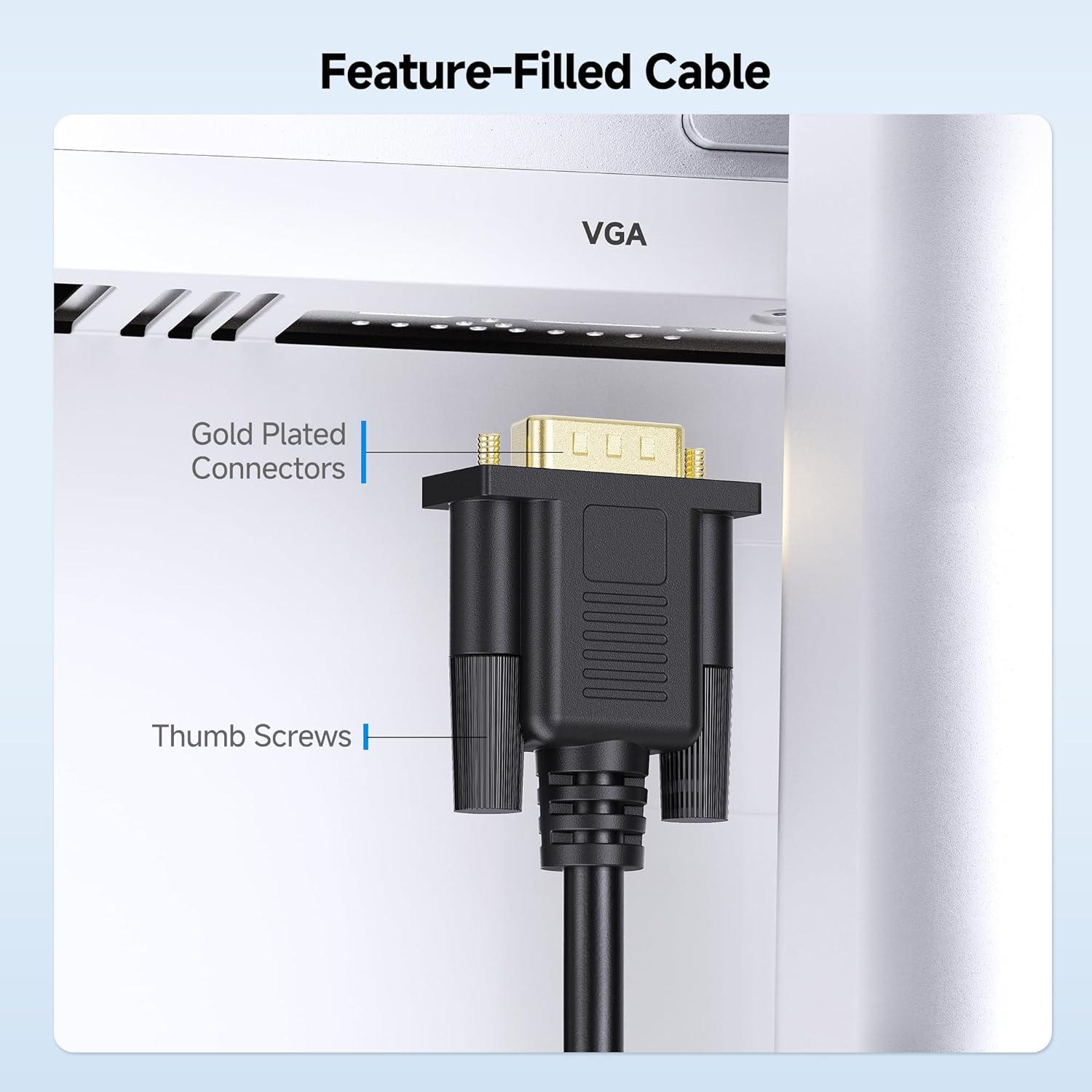 Supports High-Resolution Video: The VGA monitor cable supports resolutions up to 1920×1200 (WUXGA), 1080p (Full HD), 1600×1200 (UXGA), 1024×768 (XGA), and 800×600 (SVGA), making it ideal for connecting high-resolution monitors and projectors.
