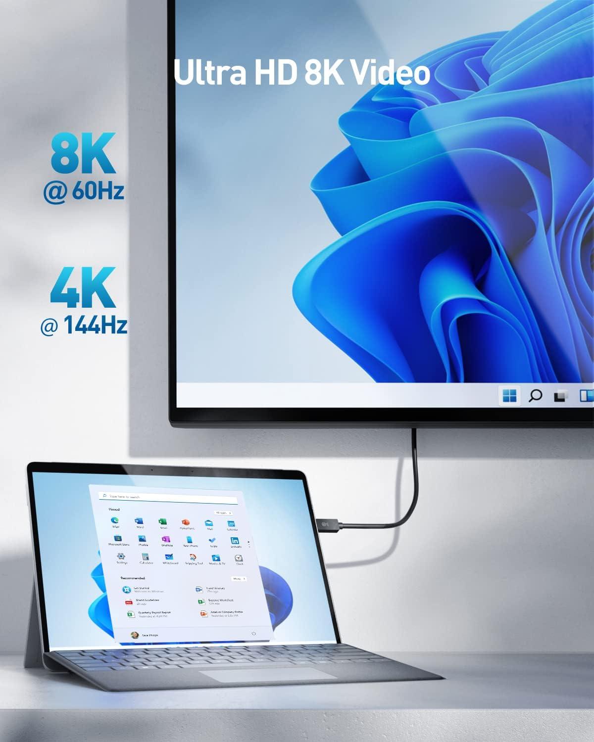 Connect your Surface device to a 4K or 8K monitor with full support for up to an 8K 60Hz or 4K 144Hz display resolution with DisplayPort 1.4 technology; This adapter is also backward compatible with 1440p, 1080p, and lower resolutions at blazing-fast refresh rates