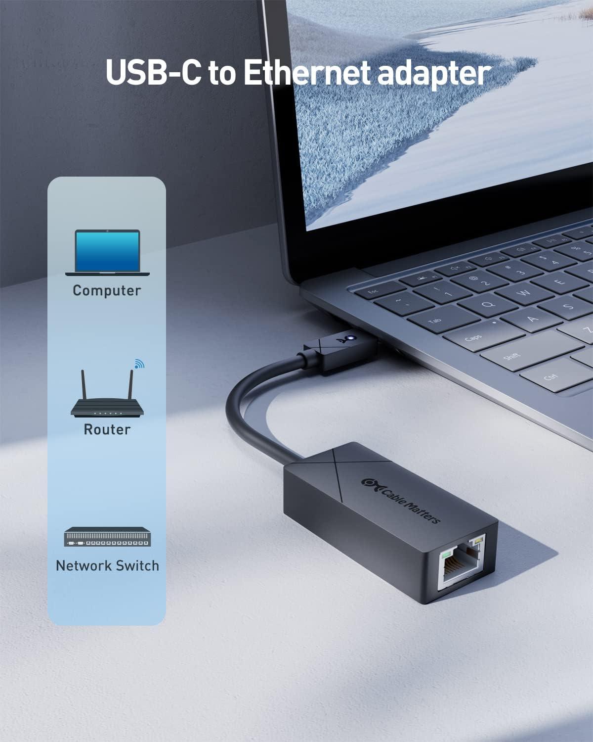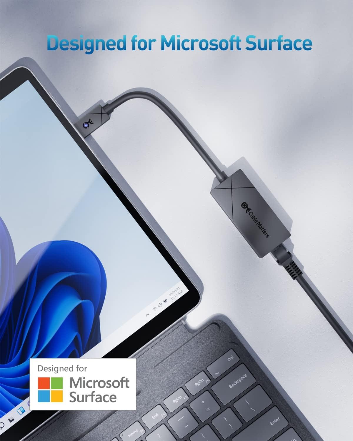 Designed for Surface certified USB-C to Ethernet adapter is compatible with USB-C equipped Surface devices; Ethernet to USBC adapter in a sleek black aesthetic design features a custom-length cable that perfectly compliments your USB-C device for compatibility with Surface devices