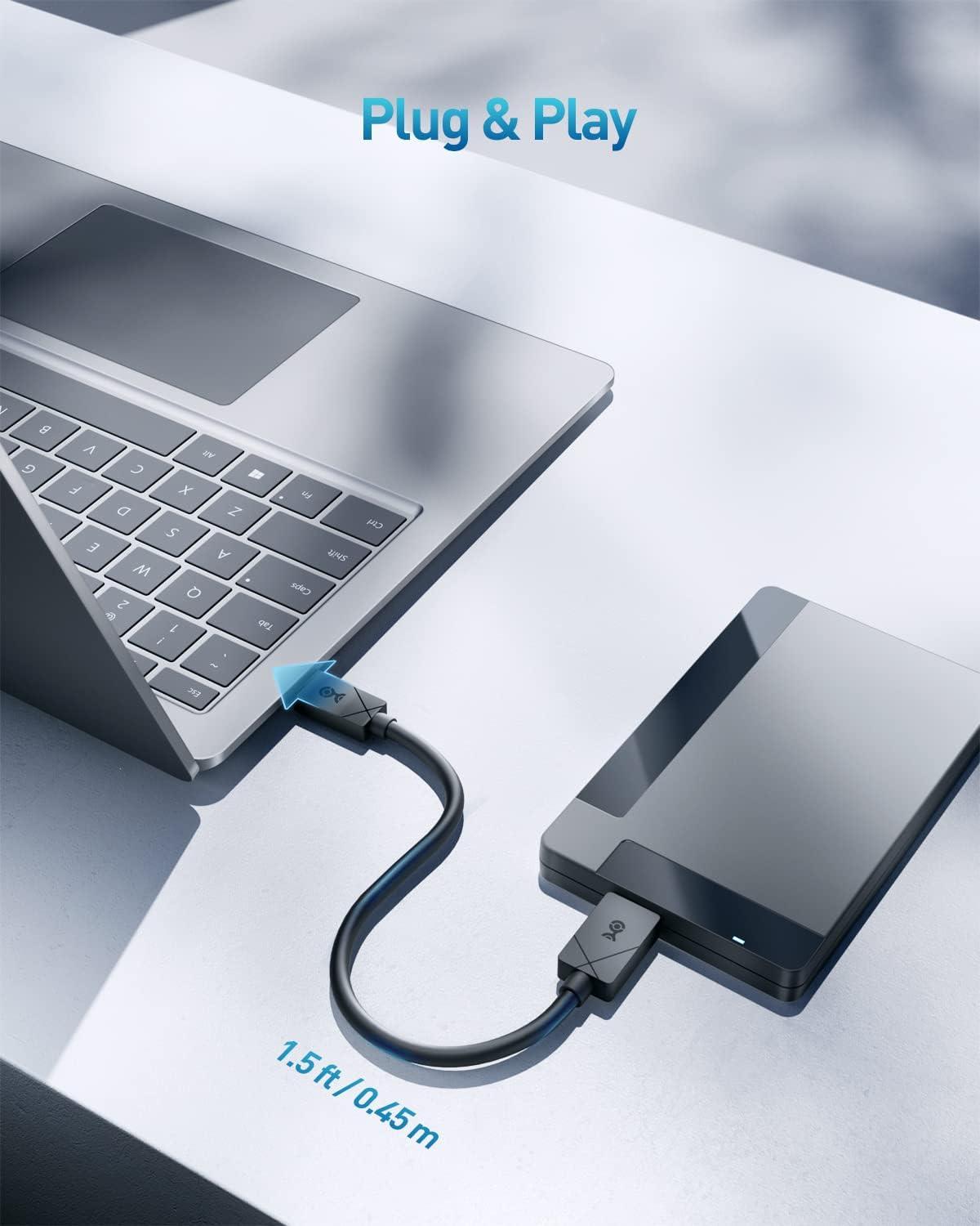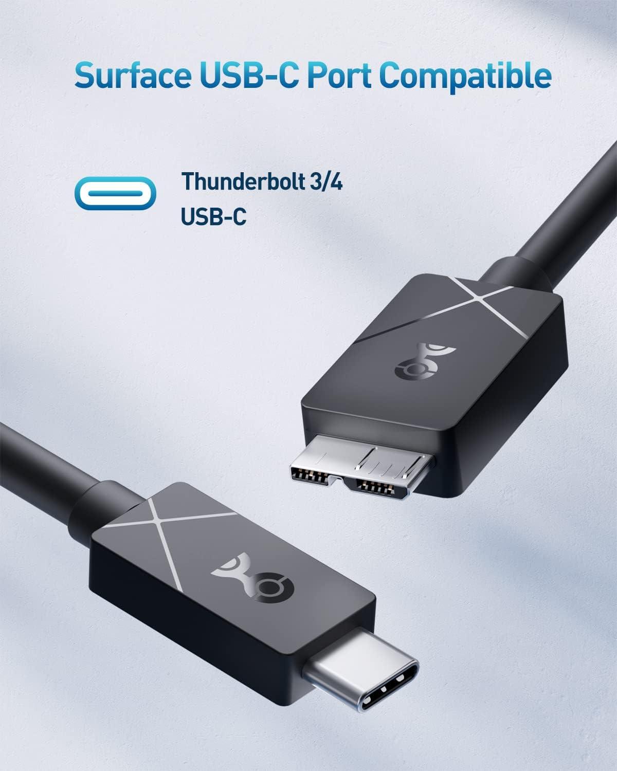 Fully shielded to provide superior transmission performance and protect against EMI/RFI noise; USB C to USB 3.0 micro-B cable clicks into place for a snug and secure connection