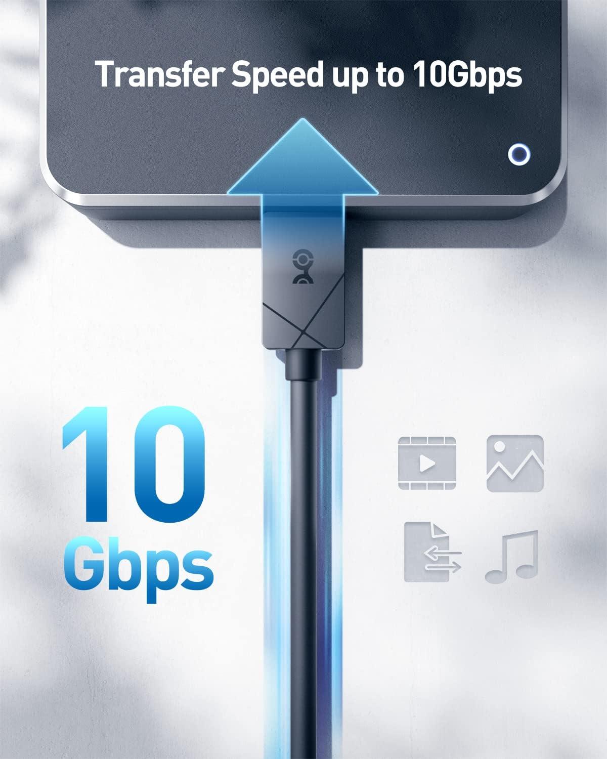 Essential legacy companion MicroB to USBC cable connects a USB peripheral to a device with USB C; USB-C to USB MicroB cable supports the USB 3.2 Gen 2 data transfer rate up to 10 Gbps
