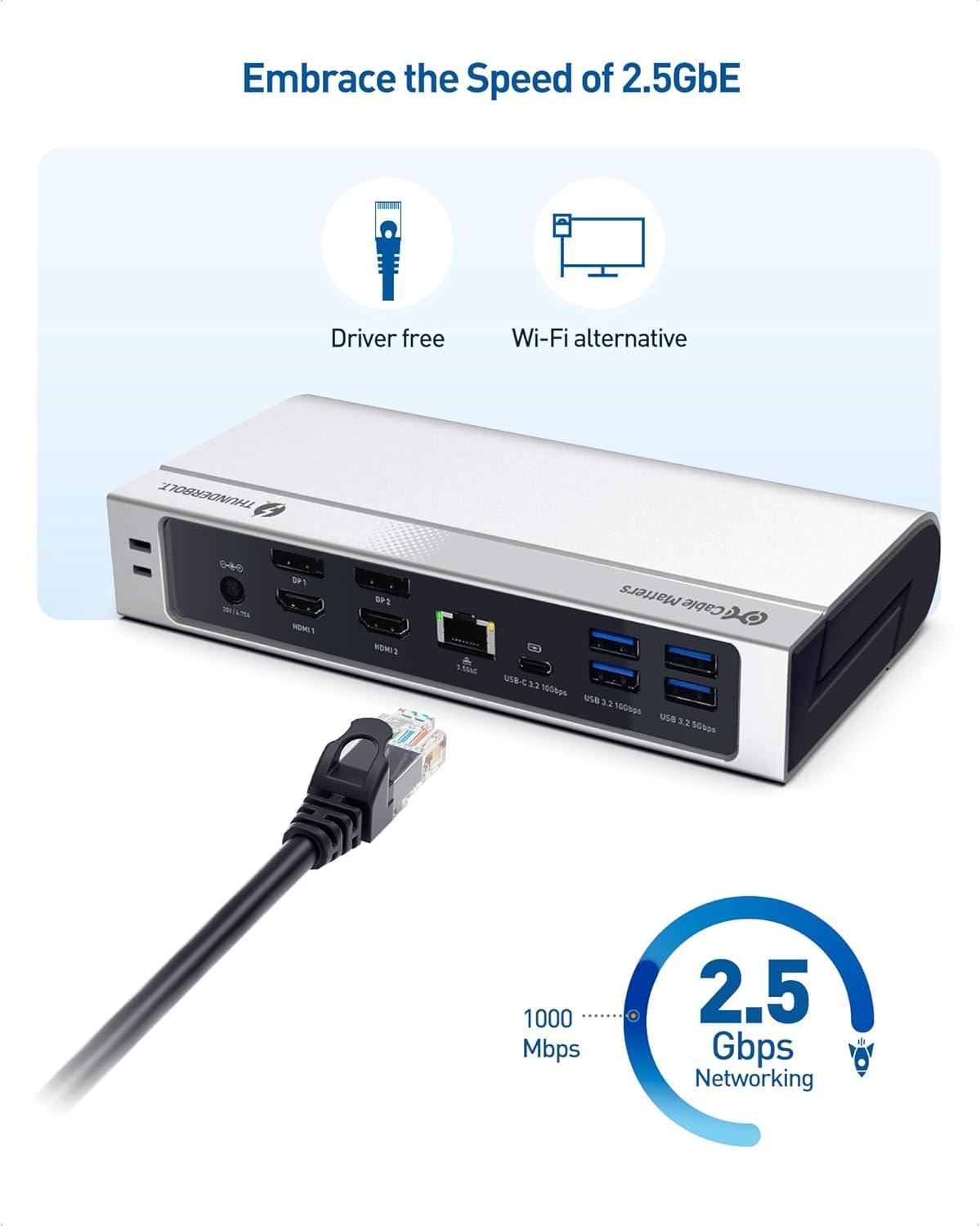 Powerful 2.5G Network and 100W PD Charging: Enjoy the ultimate convenience with this multiport docking station; 2.5G Ethernet port supports ultra-fast 2.5G ethernet networks; Enjoy crystal-clear audio with the combo 3.5mm headphone/mic port; Swap photos with the SD and microSD ports; Power and charge your device with 100W Power Delivery charging