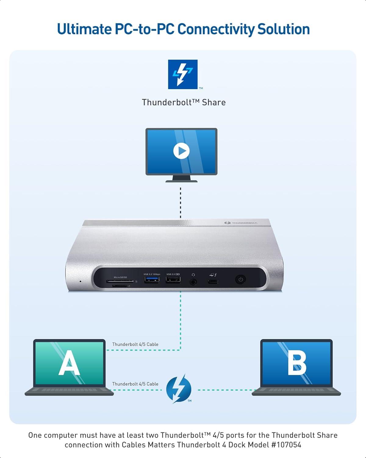 Enhanced Collaboration with Thunderbolt Share: Take your productivity to new heights with Thunderbolt Share support in this Thunderbolt 4 docking station. Seamlessly share your dock’s connected peripherals, including displays and USB devices, between multiple Thunderbolt-equipped computers without the need for reconnecting cables. This cutting-edge feature transforms the docking experience, enabling efficient multi-user environments and streamlined workspace setups.
