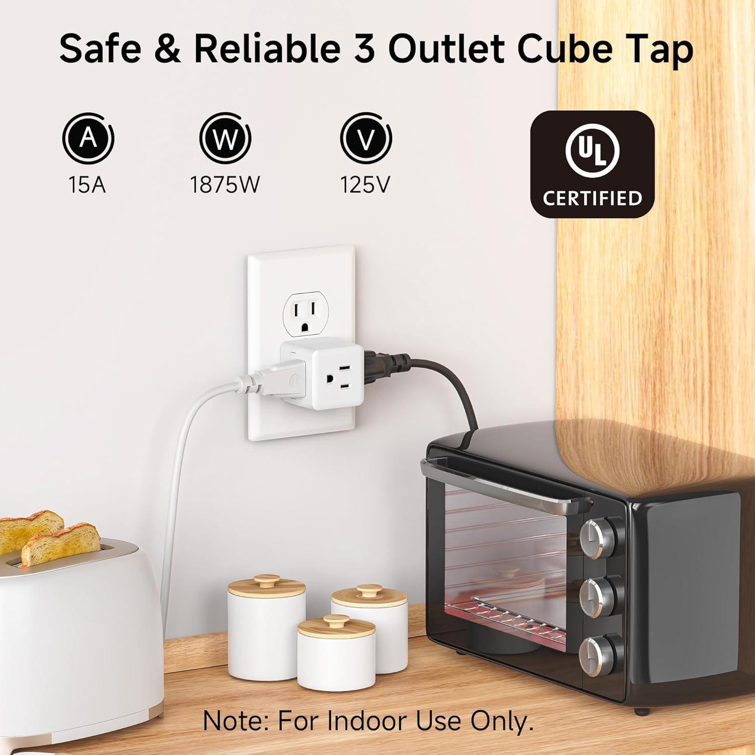 Sturdy 3 Wall Outlet Extender: This multi plug wall outlet adapter converts a single grounded outlet into 3 additional AC electrical outlets, offering a space-saving solution without the bulk of a traditional power strip.