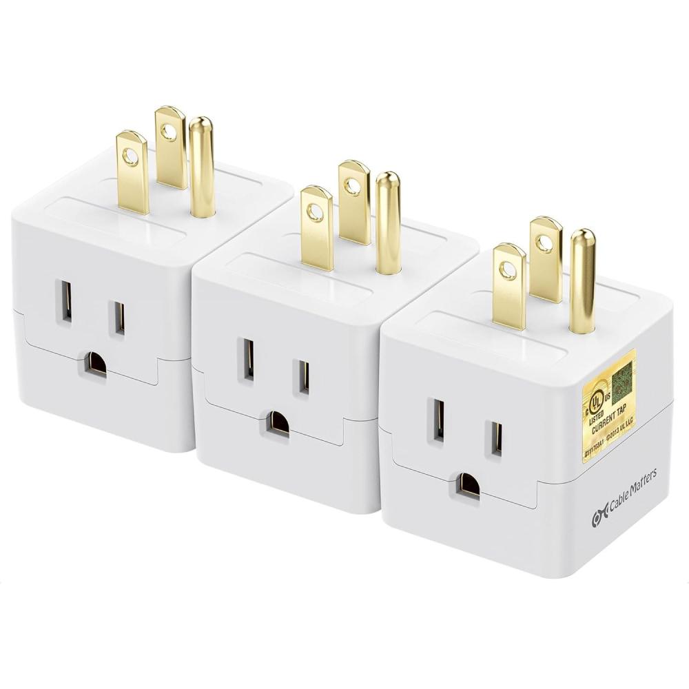 [UL Listed] Cable Matters 3-Pack 3 Outlet Wall Adapter (Grounded Cube Tap, Outlet Splitter, 3 Way Plug Adapter, 3-Prong Power Splitter), Black(White)