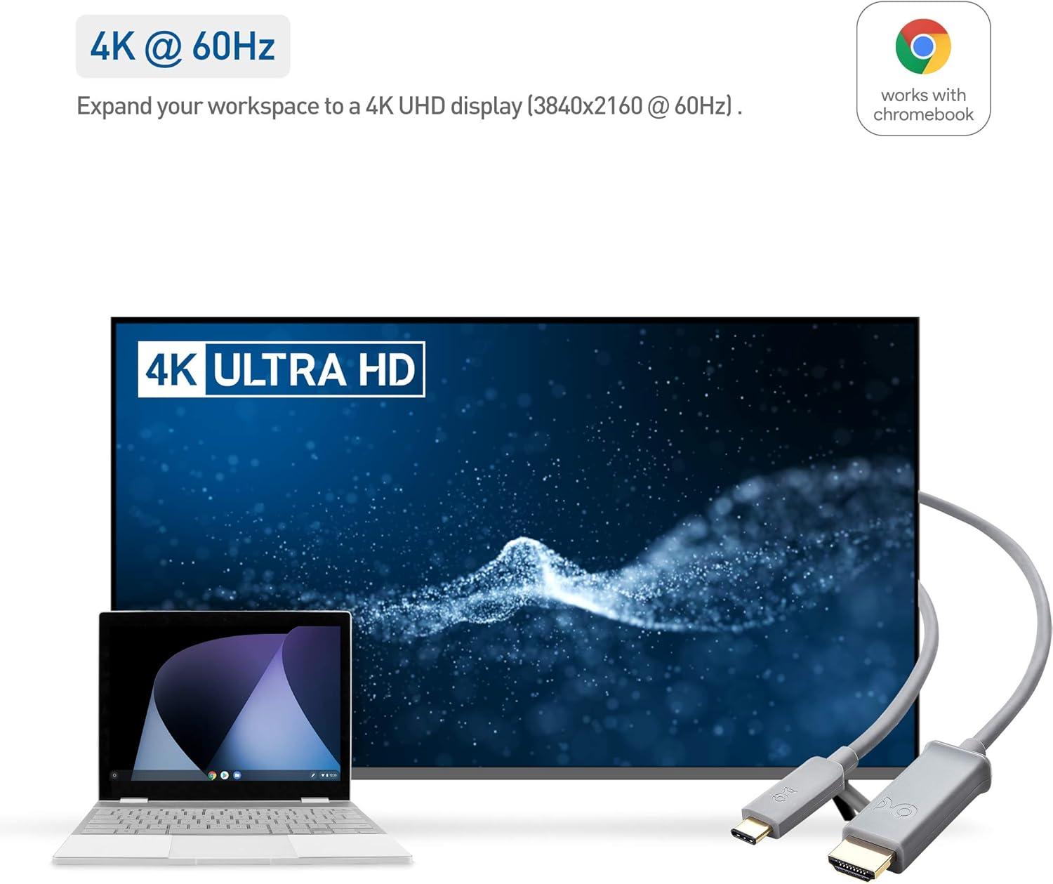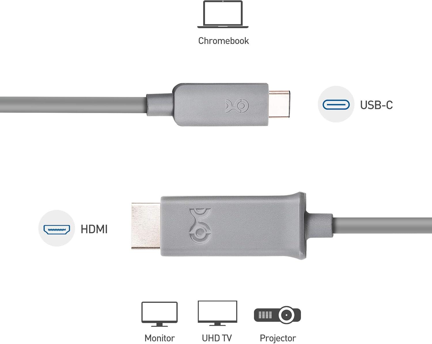 USBC to HDMI cable directly connects a Chromebook to a UHD TV, monitor or projector